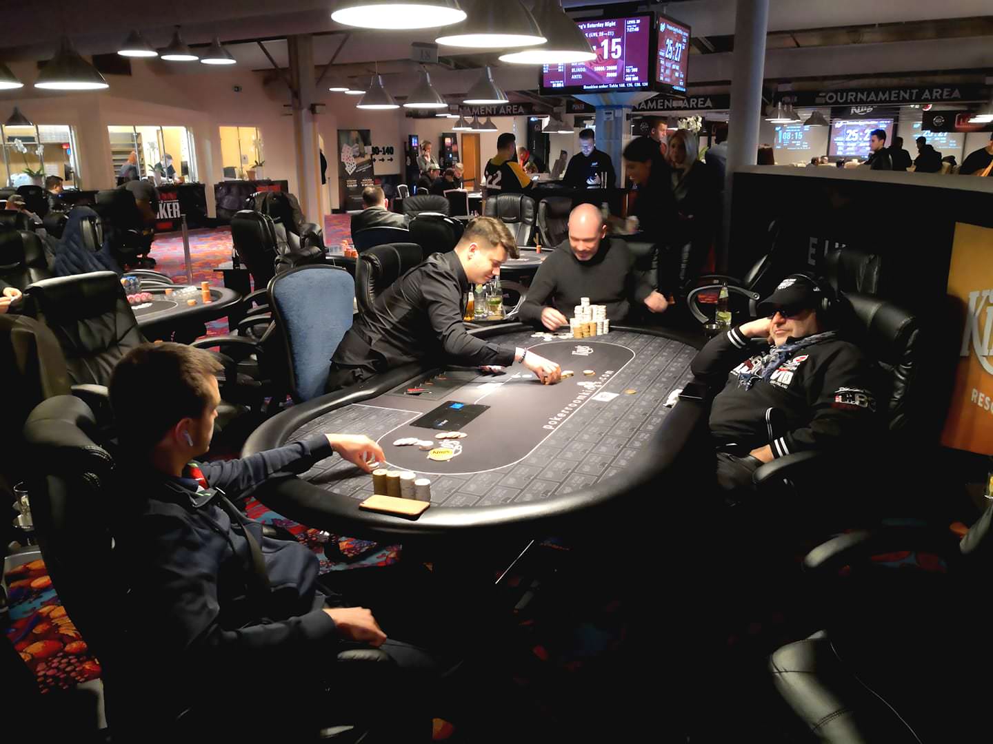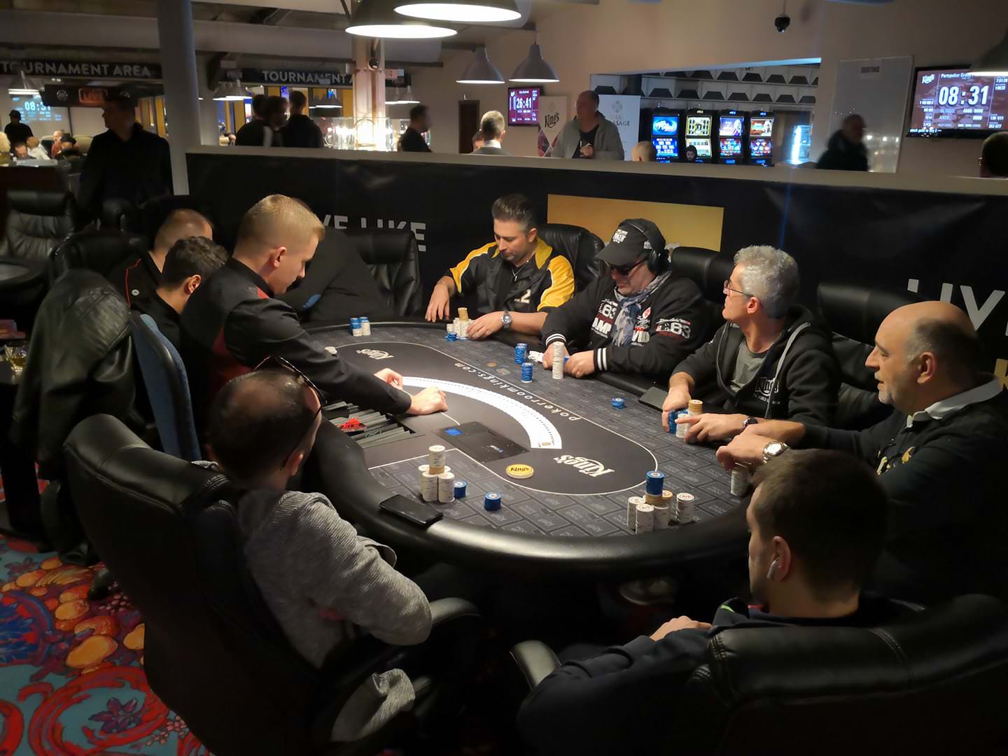 Der €1.000+€100 King’s 1k Highroller Event beginnt dann um 17:00 Uhr. Hier wird ein Preisgeld von €50.000 garantiert. Die Startdotation beträgt 100.000 und jeder Level dauert 30 Minuten. Zwei Re-Entries sind möglich und die Late-Registration ist bis Level 8 geöffnet.