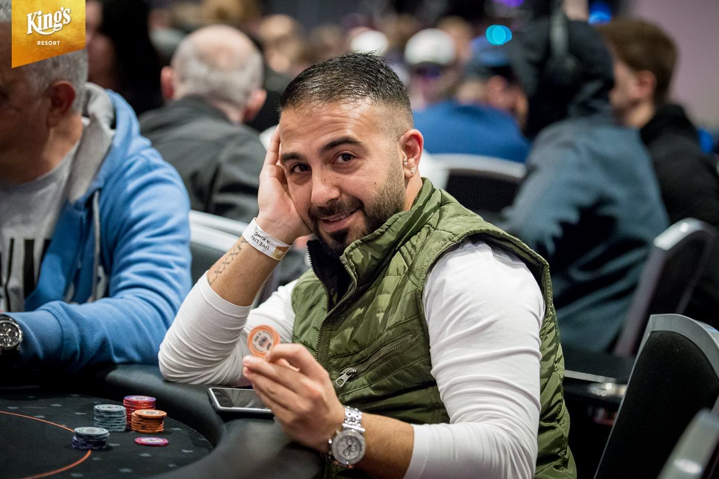 Gegen 17:00 Uhr ging es dann mit Tag 1e weiter. Hier kauften sich 248 Spieler in das Turnier ein und 89 legten noch über die Re-Entry Option nach. Damit fehlen vor dem letzten Starttag noch 655 Entries (über €195.000) um die Garantiesumme zu erreichen. Tag 1e überstanden schließlich 85 Akteure heil und damit haben sich schon 278 Teilnehmer (fünf Spieler hatten sich doppelt qualifiziert) für Tag 2 qualifiziert. Den Chiplead von Tag 1e holte sich der Österreicher Sandro Zarriello mit 496.000 (83 Big Blinds). Als Overall-Chipleader startet am Sonntag Afif Khuri aus Israel mit 656.000 (109,5 Big Blinds).