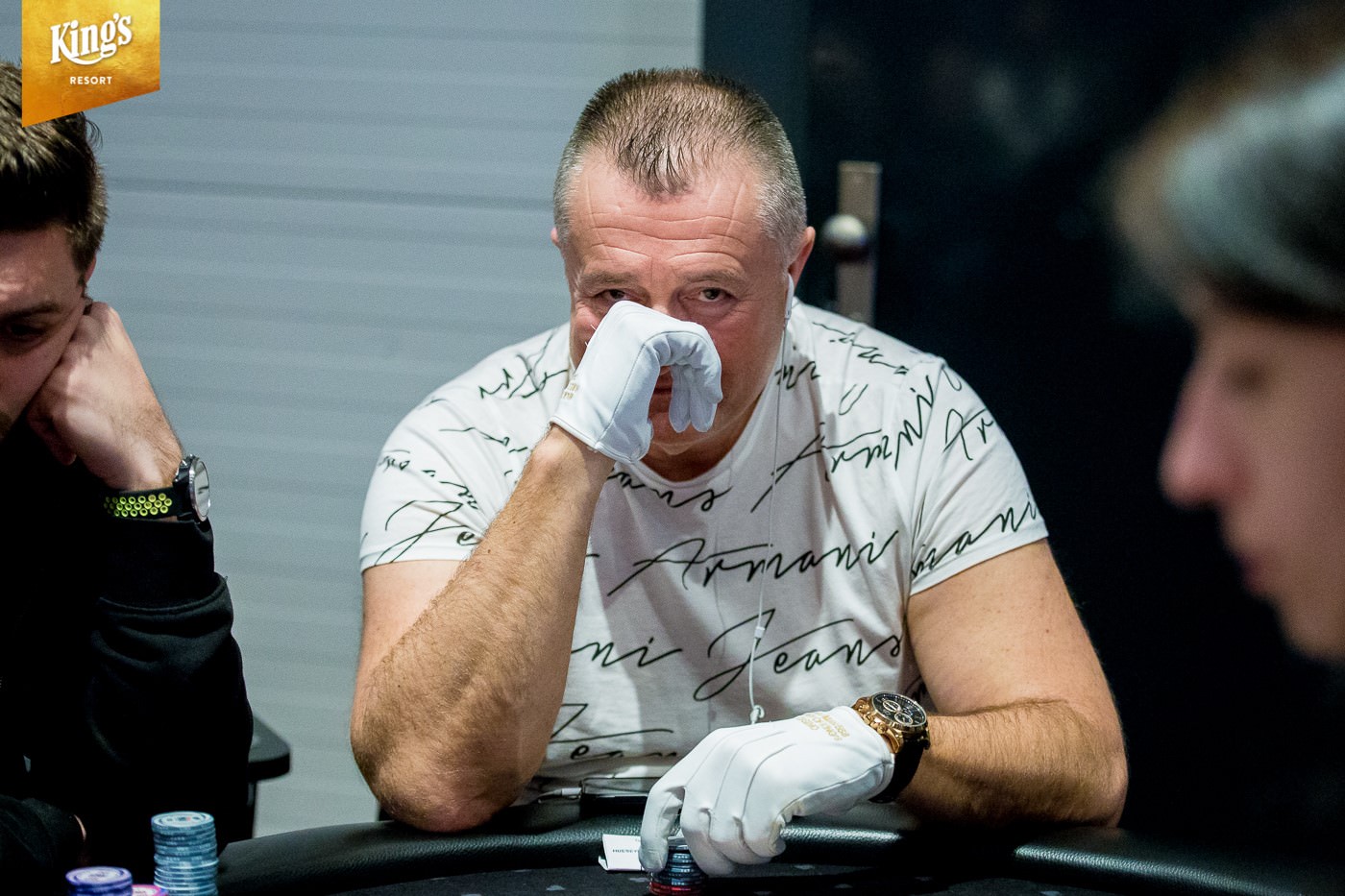 Gegen Mittag startete Tag 1f und hier registrierten sich 441 Pokerfans. 154 von ihnen nutzten auch noch den Re-Entry. Gespielt wurde mit einer Startdotation von 50.000 und auf dem Programm standen 18 Levels à 30 Minuten. Am Ende von Tag 1f konnten noch 86 Akteure ihre Chips für Tag 2 zählen. Die meiste Arbeit hatte dabei der Chipleader Siarhei Narozhny (UKR) mit 865.000 (86,5 Big Blinds).