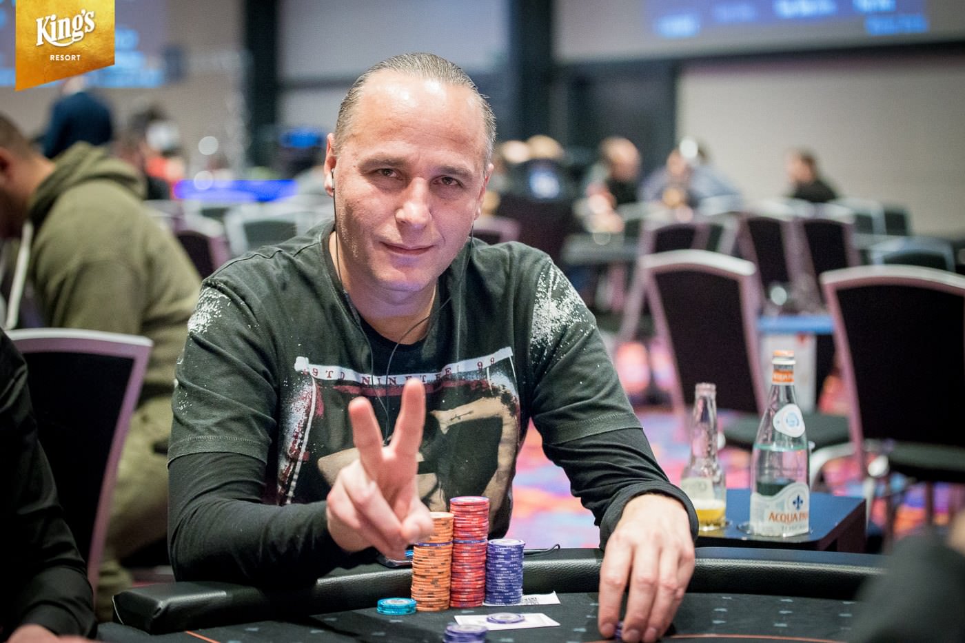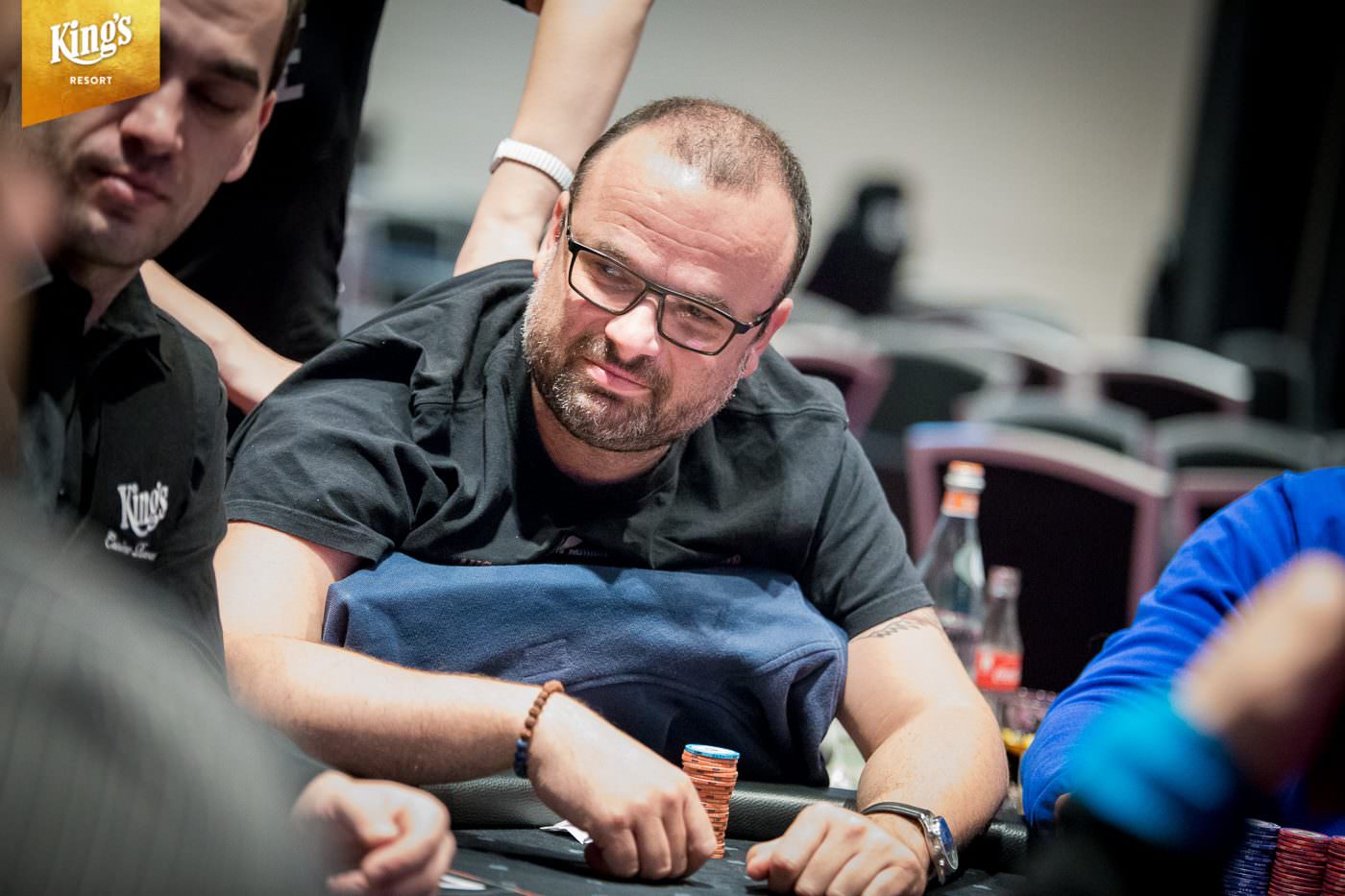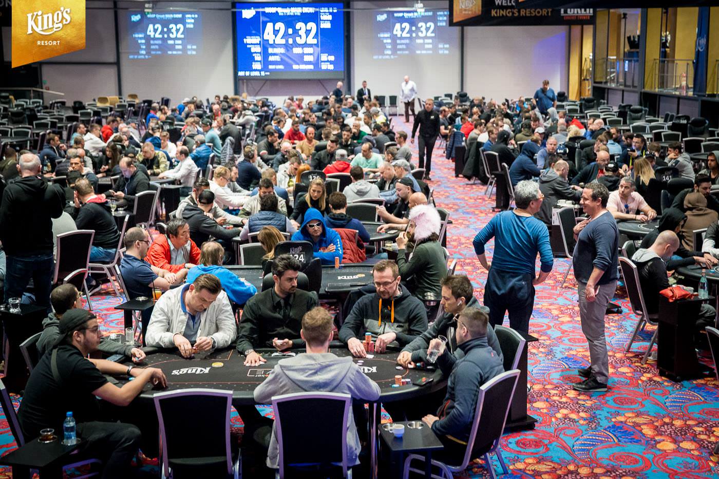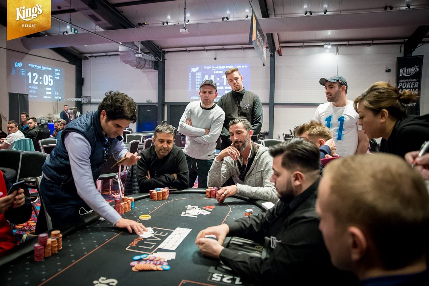 Im King’s Resort Rozvadov gab es am Sonntag die letzte Möglichkeit in den €1.550+€150 WSOP Circuit Main Event (Ring #13) einzusteigen. Während der ersten zwei Levels von Tag 2 war noch die Late-Registration geöffnet und der Re-Entry möglich. Insgesamt kamen so noch 101 Entries zusammen und damit schlagen im Main Event insgesamt 650 Starts zu Buche. Dem King’s fehlen so genau 100 Starts und man musste ein massives Overlay hinnehmen. Das garantierte Preisgeld von €1.103.500 (abzüglich Tournament Fee €1.048.325 – inklusive zehn €10.350 WSOP Europe Main Event Tickets) sollte unter den besten 71 ausgespielt werden. Der Min Cash brachte €3.590 und auf den Champion warten, der goldene WSOPC Circuit Main Event Ring, ein €10.350 WSOPE Main Event Ticket und ein Preisgeld von €190.000. Gegen 14:00 Uhr starteten 241 Pokerfans in Tag 2 und erst um kurz vor Mitternacht begann das Bubble-Play. In der siebten Hand kam es dann zu einem krassen Set-Up. Das Board lag schon bis zum Turn mit