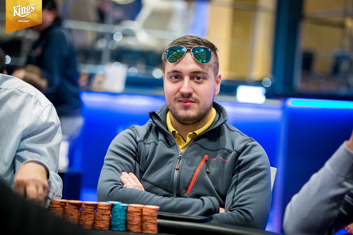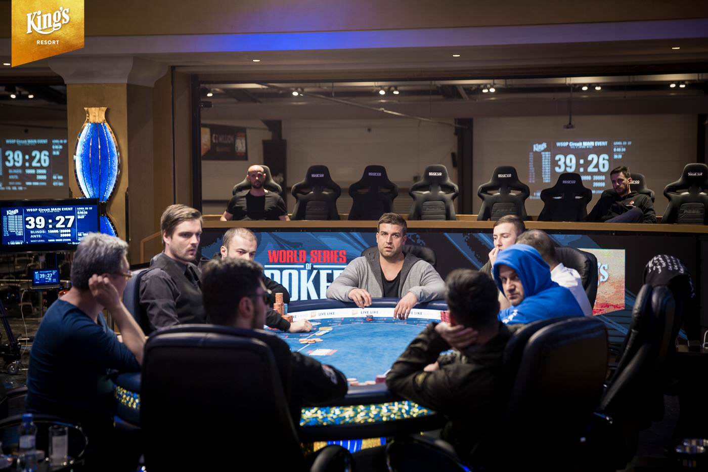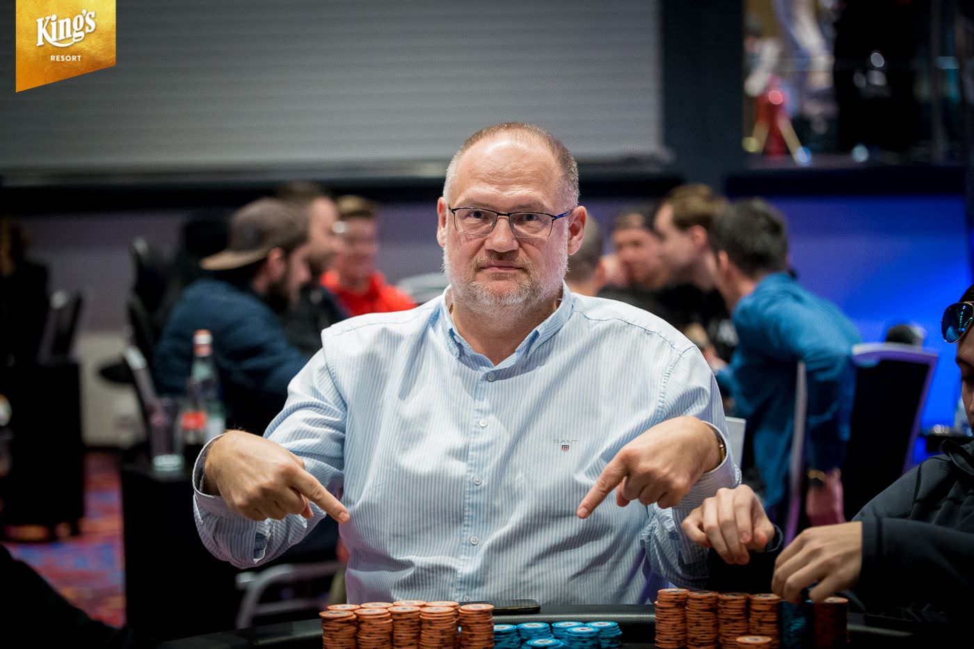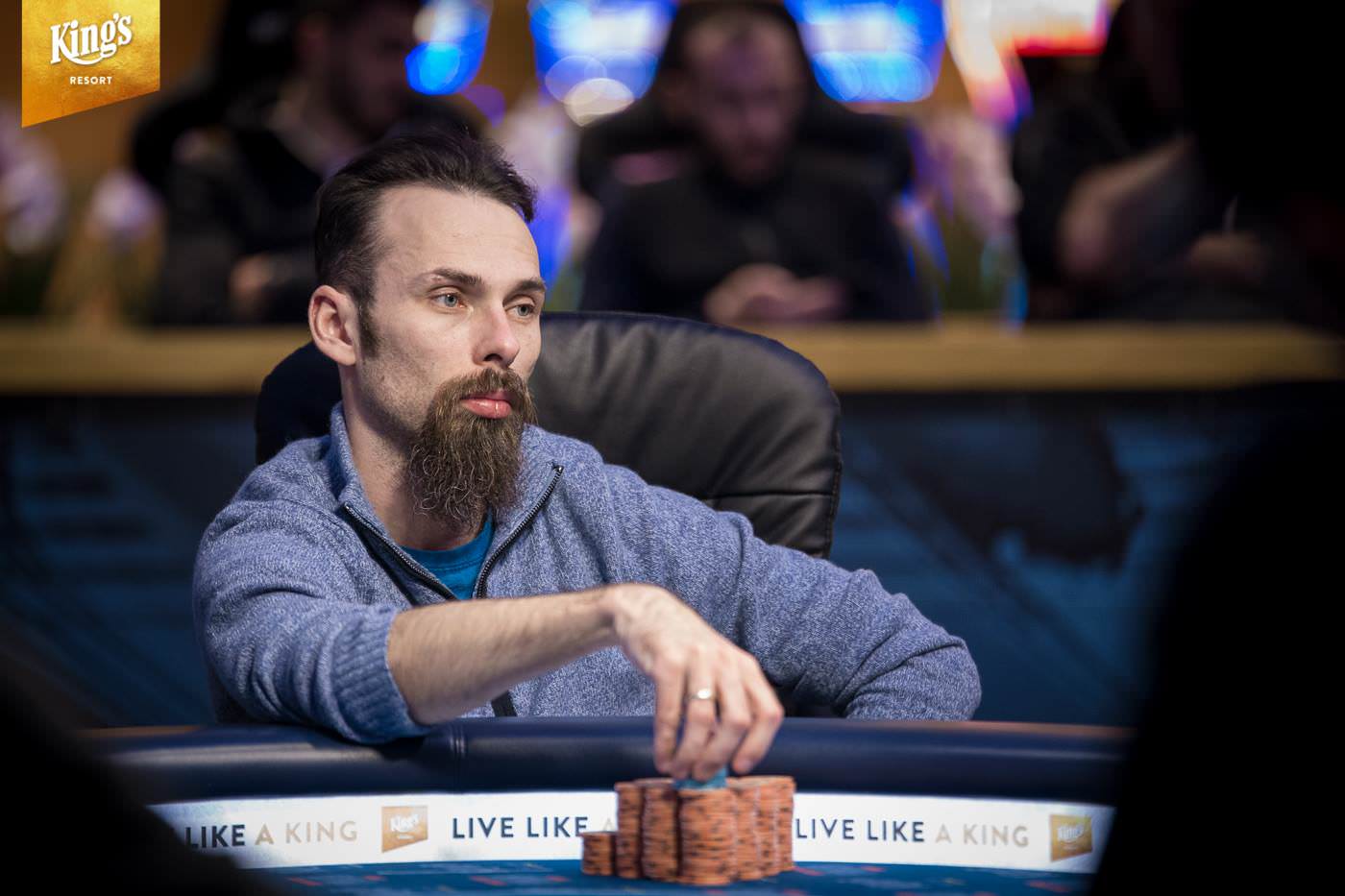 Im King’s Resort Rozvadov gab es am Sonntag die letzte Möglichkeit in den €1.550+€150 WSOP Circuit Main Event (Ring #13) einzusteigen. Während der ersten zwei Levels von Tag 2 war noch die Late-Registration geöffnet und der Re-Entry möglich. Insgesamt kamen so noch 101 Entries zusammen und damit schlagen im Main Event insgesamt 650 Starts zu Buche. Dem King’s fehlen so genau 100 Starts und man musste ein massives Overlay hinnehmen. Das garantierte Preisgeld von €1.103.500 (abzüglich Tournament Fee €1.048.325 – inklusive zehn €10.350 WSOP Europe Main Event Tickets) sollte unter den besten 71 ausgespielt werden. Der Min Cash brachte €3.590 und auf den Champion warten, der goldene WSOPC Circuit Main Event Ring, ein €10.350 WSOPE Main Event Ticket und ein Preisgeld von €190.000. Gegen 14:00 Uhr starteten 241 Pokerfans in Tag 2 und erst um kurz vor Mitternacht begann das Bubble-Play. In der siebten Hand kam es dann zu einem krassen Set-Up. Das Board lag schon bis zum Turn mit