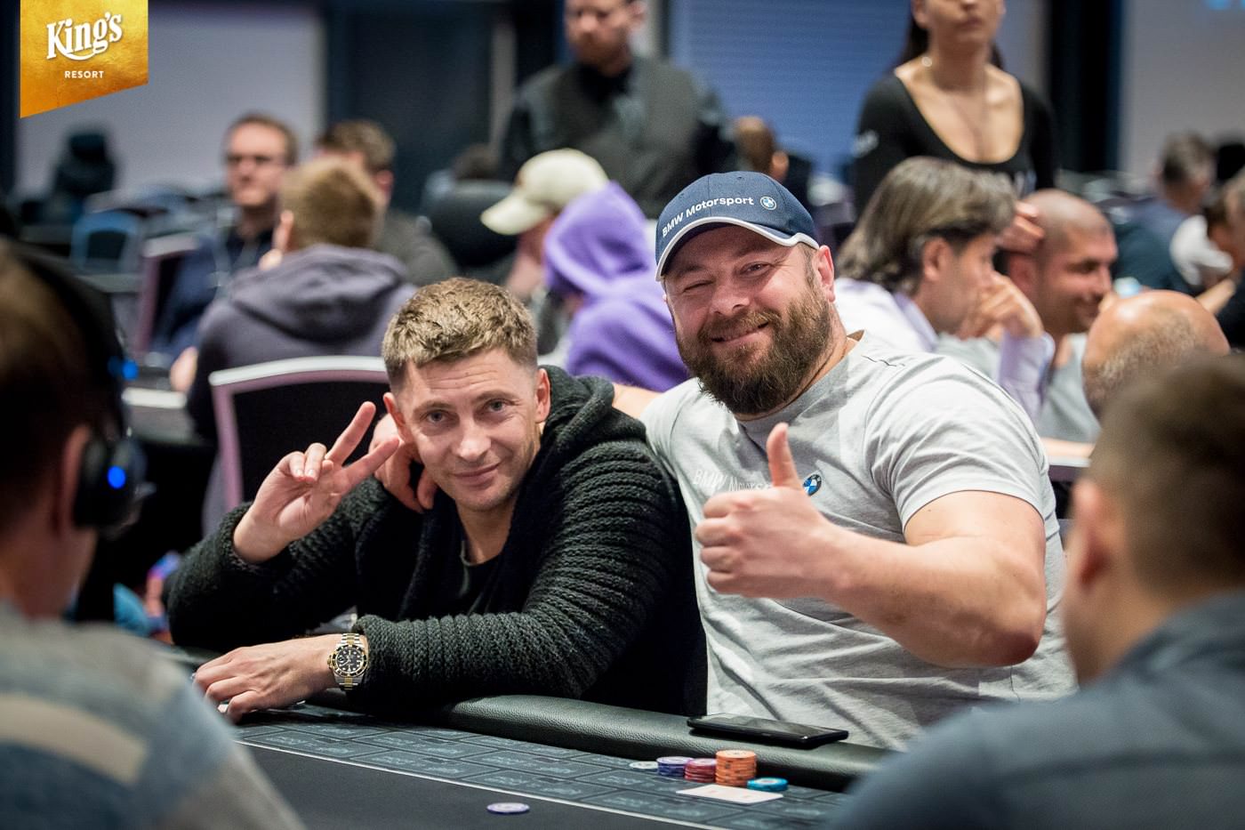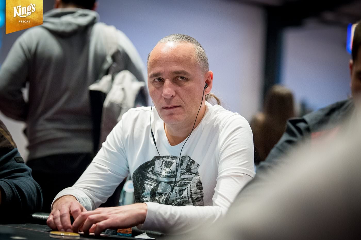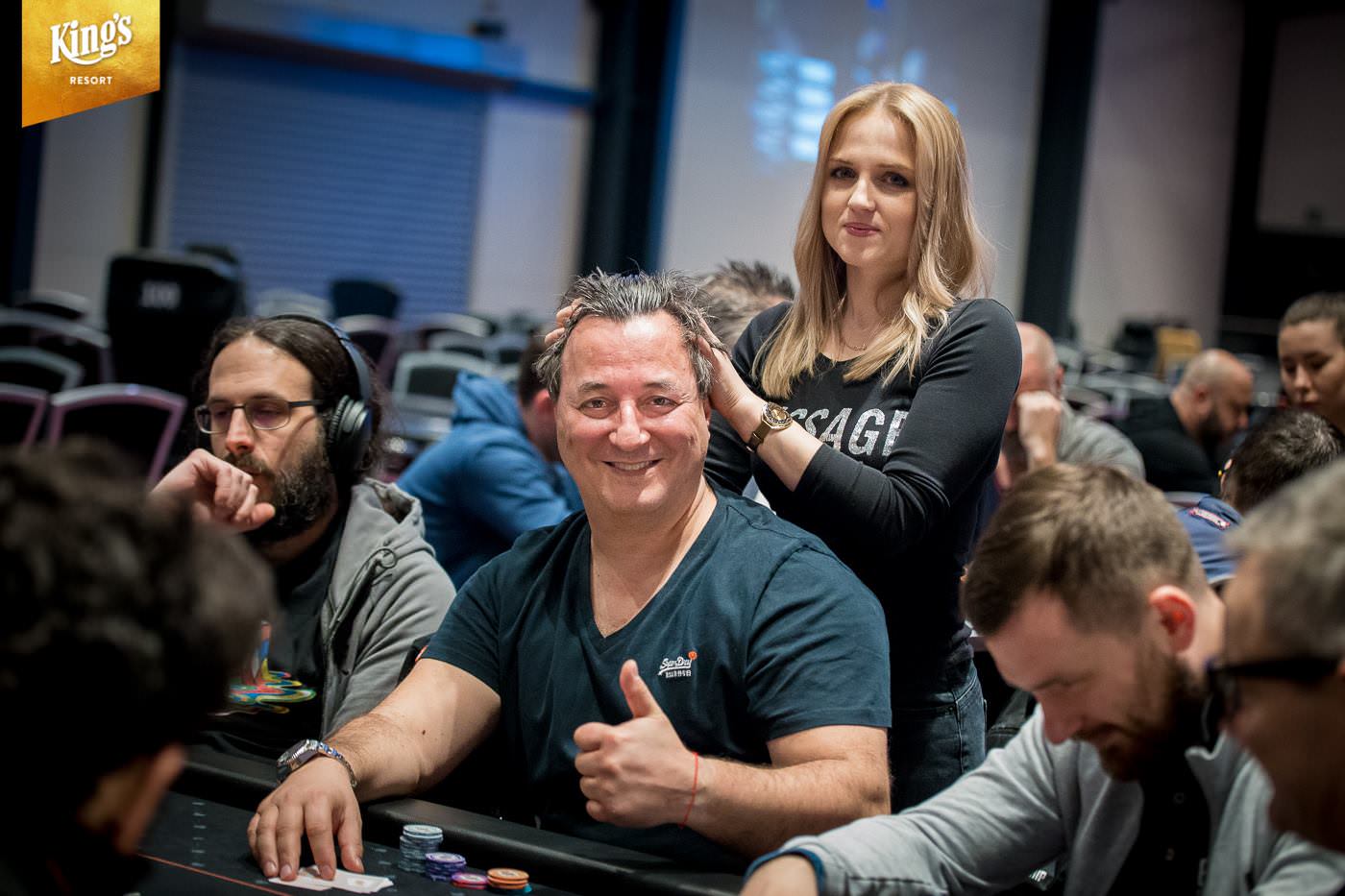 Im King’s Resort Rozvadov fand am Samstag der Tag 1b des €2.200+€150 „The Big Wrap“ Pot Limit Omaha 8-Max Main Event statt, bei dem ein Preisgeld von €1.000.000 garantiert wird. Für die Teilnehmer gab es einen Starting Stack von 100.000 und es wurden 12 Levels à 40 Minuten gespielt. Diese Chance ließen sich 197 Freunde des Spiels mit vier Hole Cards nicht entgehen und 54 von ihnen nutzten noch ihren Re-Entry. Damit kommt man vor dem Start von Tag 2 schon auf insgesamt 448 Entries und es fehlen nur noch 31 Starts bis zum Erreichen der Garantiesumme. Das Teilnehmerfeld war stark und prominent besetzt. So sahen wir zum Beispiel Erich Kollmann (AUT), „The Talk“ (GER), Andreas Freund (AUT), Thomas Pohnke (GER), Marek Blasko (SVK), Peter Mühlbek (AUT), Robert Zipf (GER), Harry Casagrande (AUT),Super Highroller „Renato“ und an seinem Geburtstag „chiKKita banAAna“ an den Tischen. Am Ende des Tages durften noch 95 Akteure ihre Chips für Tag 2 eintüten. Den massiven Overall-Chiplead konnte sich der Brite Robert William James Cowen mit 1.057.000 (264 Big Blinds) sichern. Insgesamt haben sich 170 Teilnehmer für Tag 2 qualifiziert.