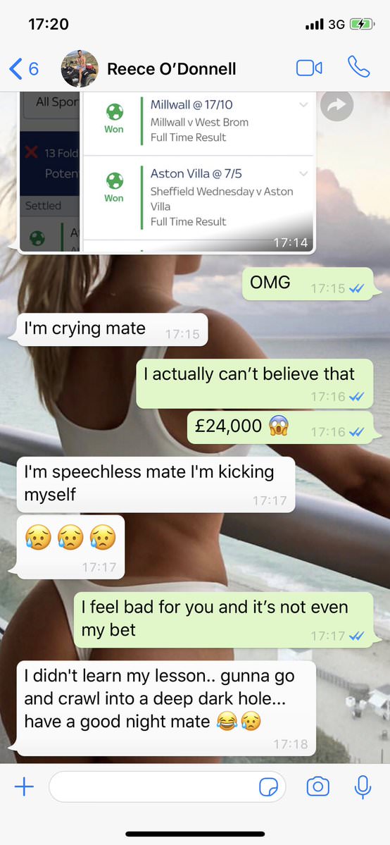 Doch was dann passierte ist absolut unglaublich und will in meine Birne nicht reingehen. Nachdem drei, vier Spiele reingingen, kam der Schlaumeier auf die glorreiche Idee vorzeitig auszucashen…und jetzt kommts….und gab sich mit lächerlichen £14,- Pfund zufrieden! Das Ende vom Lied war natürlich, dass alle 15 Tipps reinkamen und er sich so £24.000 Pfund durch die Lappen gehen ließ!