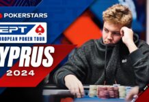Im Crystal Cove Hotel & Casino (Nord Zypern) läuft aktuell der $5.300 Merit Poker Classics Main Event powered by partypoker Live. Nach den fünf Starttagen Eins standen 508 Entries auf der Uhr, doch für die ersten vier Level am Tag 2 war noch die Late-Registration und der Re-Entry möglich. Mit weiteren 141 Entries am Tag 2 kam an auf insgesamt 649 Starts (438 Spieler + 211 Re-Entries) und es ging um ein Preisgeld von $2.990.267. Der Min Cash auf Platz 71 bringt $9.270 und auf den Champion warten satte $565.157. Am Tag 2 wurden sechs Level à 75 Minuten gespielt und am Ende konnten noch 149 Akteure ihre Chips für Tag 3 eintüten. Den Tag 2 hatten auch noch 14 Deutsche und fünf Österreicher in Angriff genommen. Überstanden haben ihn nur acht Deutsche. Auf der Strecke blieben zum Beispiel, Rainer Kempe (GER), Mario Mosböck (AUT), Julian Menhardt (AUT), Gerald Karlic (AUT), Daniel Prior (AUT), Josip Simunic (AUT), Oliver Krefeld (GER), Abraham Passet (GER), Hossein Ensan (GER), Niko Koop (GER) oder auch Akin Tuna (GER). Als bester DACH-Spieler darf Christian Bauer (GER) auf Rang 18 mit 774.000 (97 Big Blinds) übernachten. Den Chiplead hält der Russe Sergey Baburin mit 1.573.000 (196,5 Big Blinds).