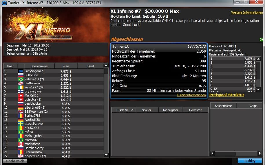 Beim XL Inferno auf 888poker standen gestern die nächsten drei Turniere an.