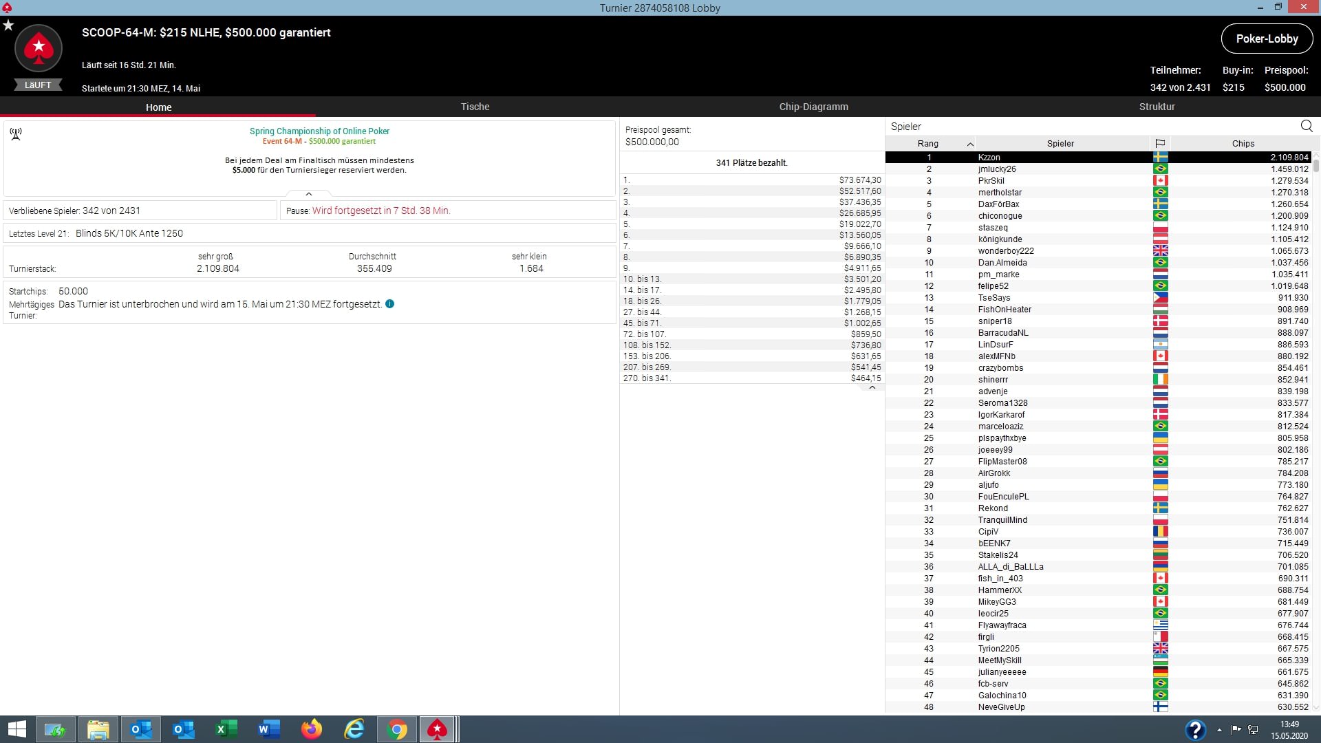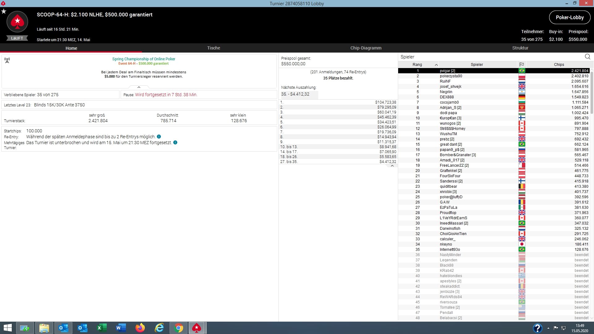 Am späten Abend wurde dann noch das $33 Late Deepstack (Event #28) gespielt. Hier durfte man 507 Teilnehmer und 126 Re-Entries verbuchen und es wurde ein Preisgeld von $18.990 ausgespielt. Am Ende setzte sich nach einem Heads-Up Deal der Däne „weflipyouwin“ für $3.276 durch. „Lik3az0nbY“ aus Deutschland holte Platz 7 für $617.