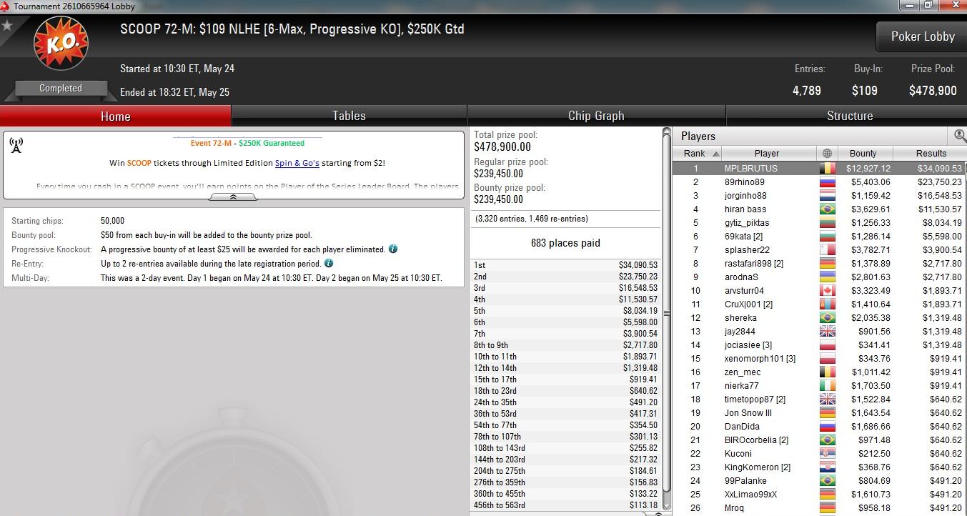 Die deutschsprachigen Spieler erwischten dabei gestern einen starken Tag, auch wenn es nur zu einem Tagessieg für „Cashine94“ bei der niedrigen Kategorie von Event #72 reichte. Er setzte sich gegen mehr als 18.000 Konkurrenten durch und erhielt gut $14.600 Preisgeld.