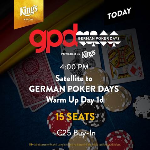 | Wed 29.05. 16:00 | Satellite to King’s German Poker Days Warm Up Day 1d | 1.725 EUR | 20 EUR | 5 EUR |