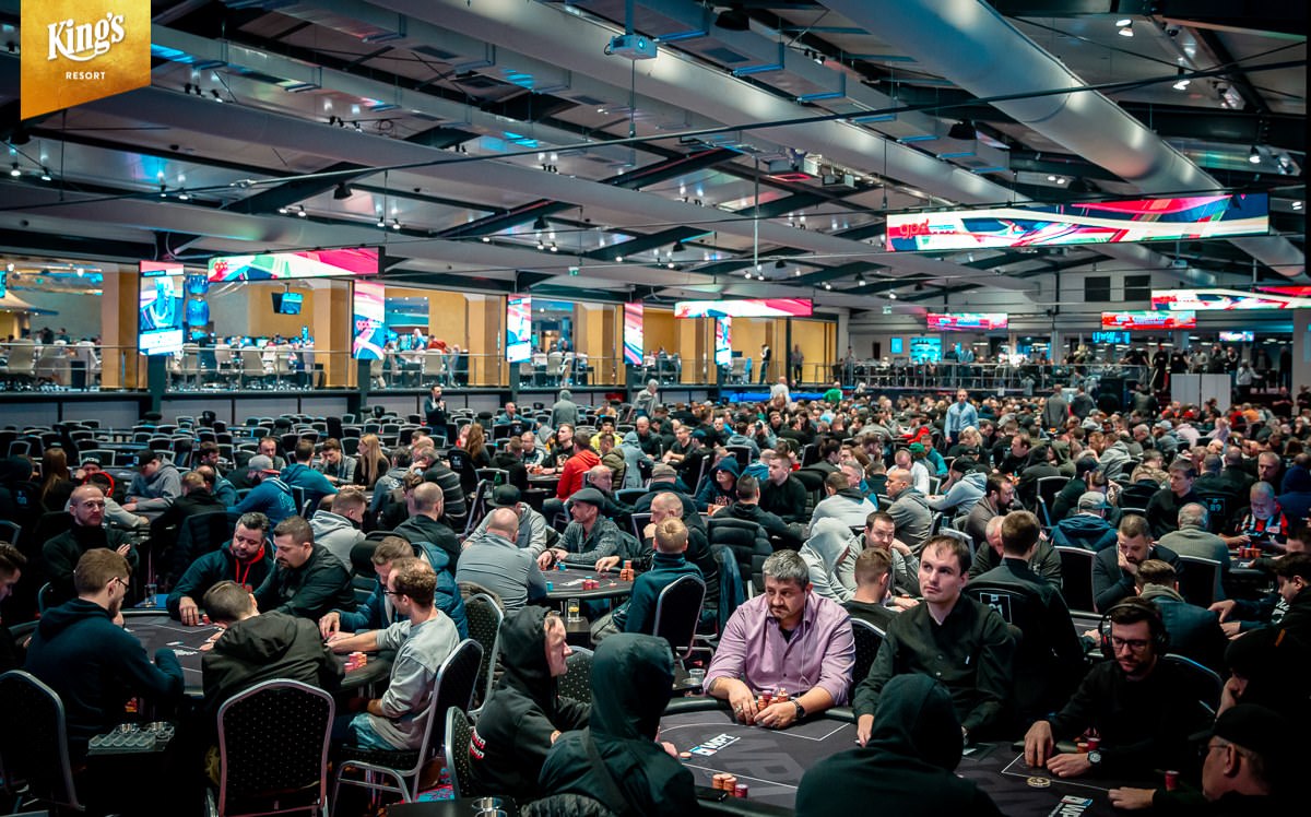 Am Mittwochabend stand im King’s Resort mit dem Tag 1d des €100+€15 German Poker Days Warm-Up Events der letzte reguläre Starttag an. Bei dem Turnier wird ein Preisgeld von €110.350 (inklusive eines €10.350 WSOP Europe Main Event Ticket) garantiert. Für das Erreichen der Garantie benötigt man 1.162 Starts und nach den ersten drei Starttagen schlugen erst 239 Entries zu Buche. Am Abend vor dem Feiertag (Himmelfahrt) wurde es dann doch noch etwas voller in der großen King’s Pokerarena. 227 Pokercracks kauften sich in das Turnier ein und 119 von ihnen machten noch vom Re-Entry Gerauch. Damit kommt man vor den Turbo Flight erst auf 575 Entries und es fehlen noch 587 Starts zum Erreichen der Garantiesumme. Gespielt wurde wie schon die Tage zuvor mit einem Starting Stack von 40.000 und man musste 16 Level à 30 Minuten überstehen. Dieses Kunststück gelang schließlich 68 Akteuren, so dass bereits 103 Protagonisten (drei Spieler hatten sich doppelt qualifiziert) für das Finale qualifiziert sind. Den Overall-Chiplead konnte sich der Deutsche Benjamin Mario Reincke mit 732.000 (122 Big Blinds) sichern.