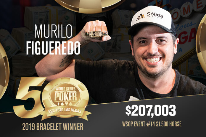 Bracelet und gut $207.003 Preisgeld für Murilo Souza Figueredo, der dafür überschwänglich gefeiert wurde.