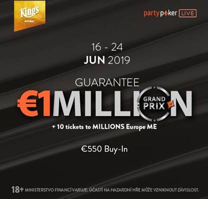 | Thu 20.06. 18:00 | partypoker Grand Prix Million King’s – Day 1C | 1.103.000 EUR | 500 EUR | 50 EUR |