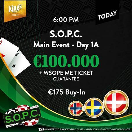 | Thu 13.06. 16:00 | Satellite to S.O.P.C. Main Event Day 1a | 2.625 EUR | 35 EUR | 5 EUR | ||