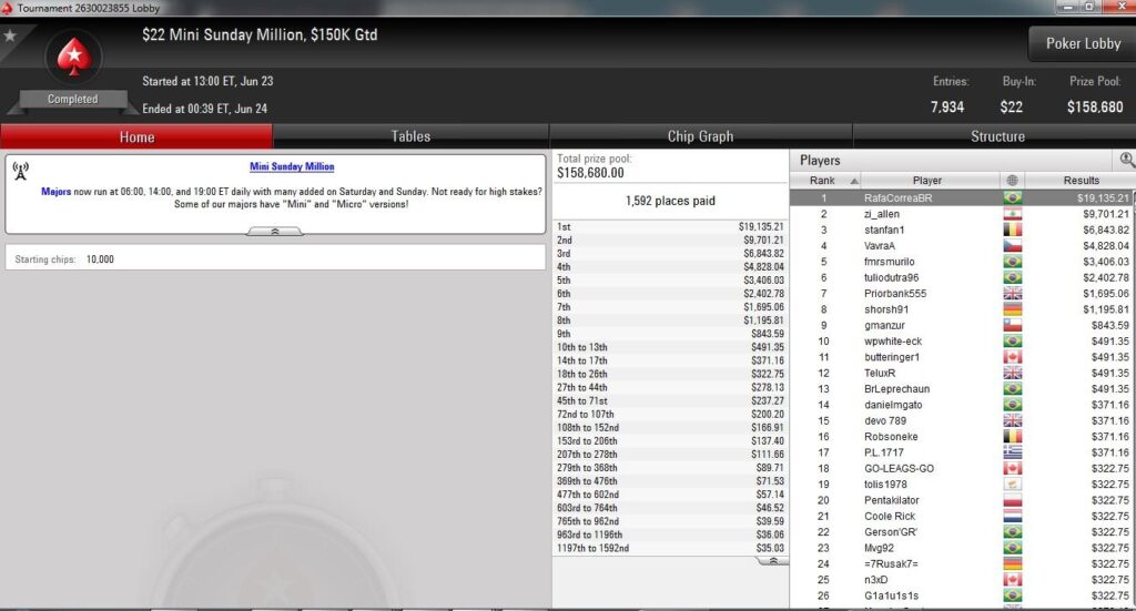 Bei den großen Sonntagsturnieren auf PokerStars machte sich dies zumindest bei einigen Turnieren bemerkbar, indem die Garantie dieses Mal nicht erreicht wurde.
