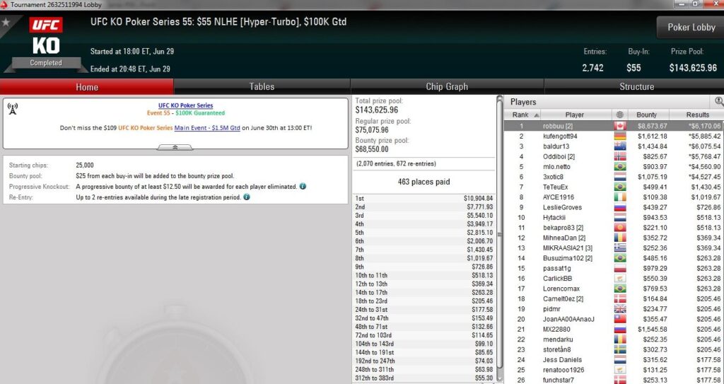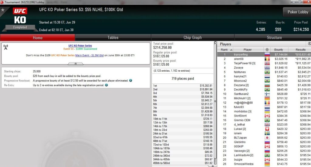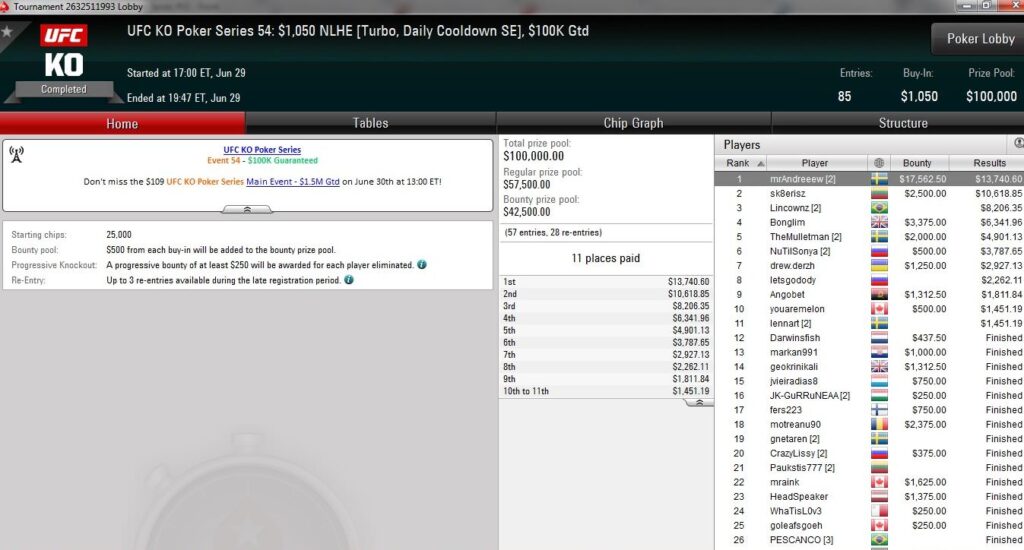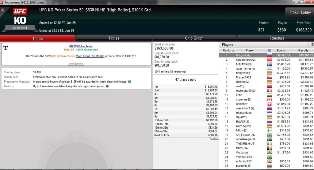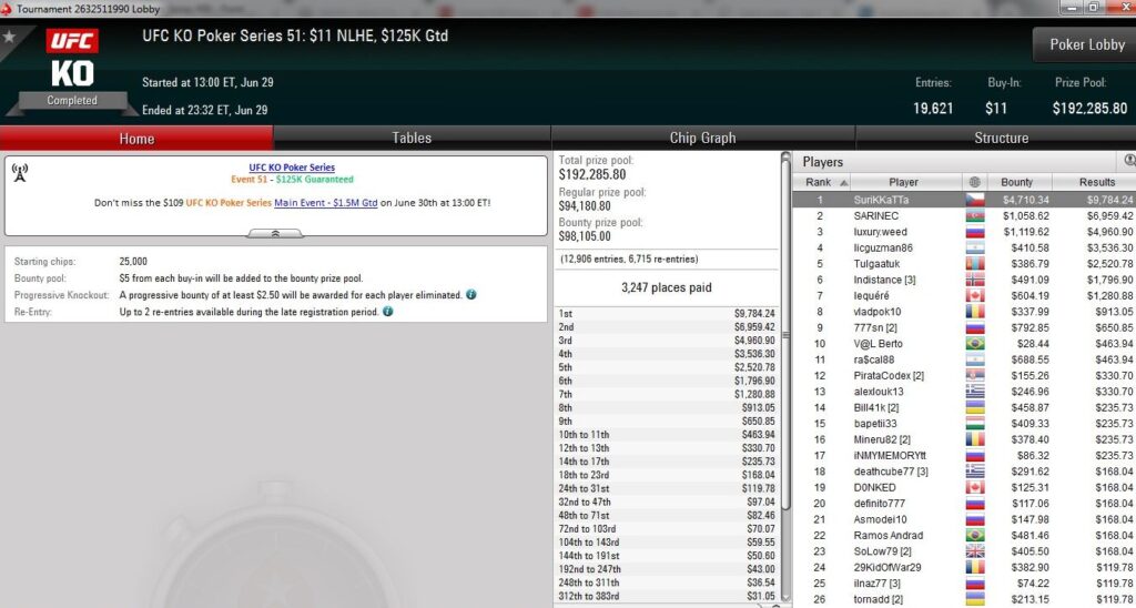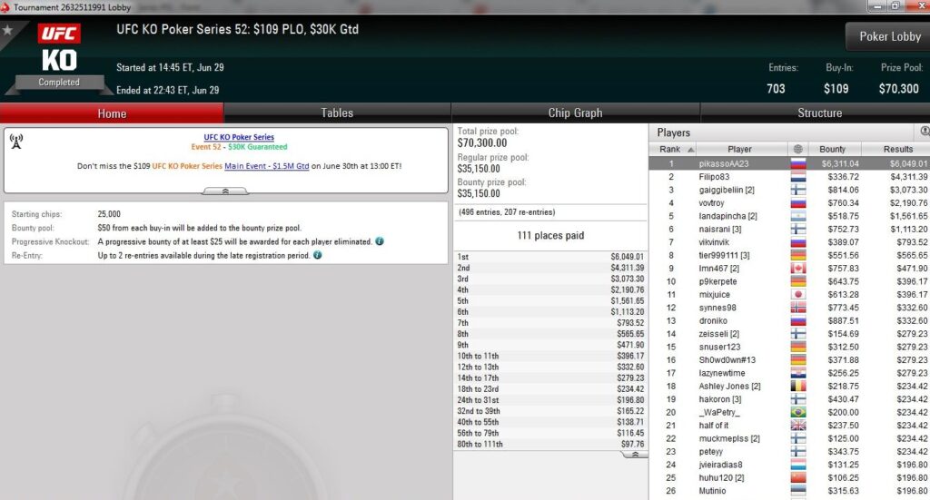 Am vorletzten Tag der UFC KO Series auf PokerStars wurden weitere sieben Turniere ausgetragen und dabei über $850.000 an Preisgeldern ausgeschüttet.