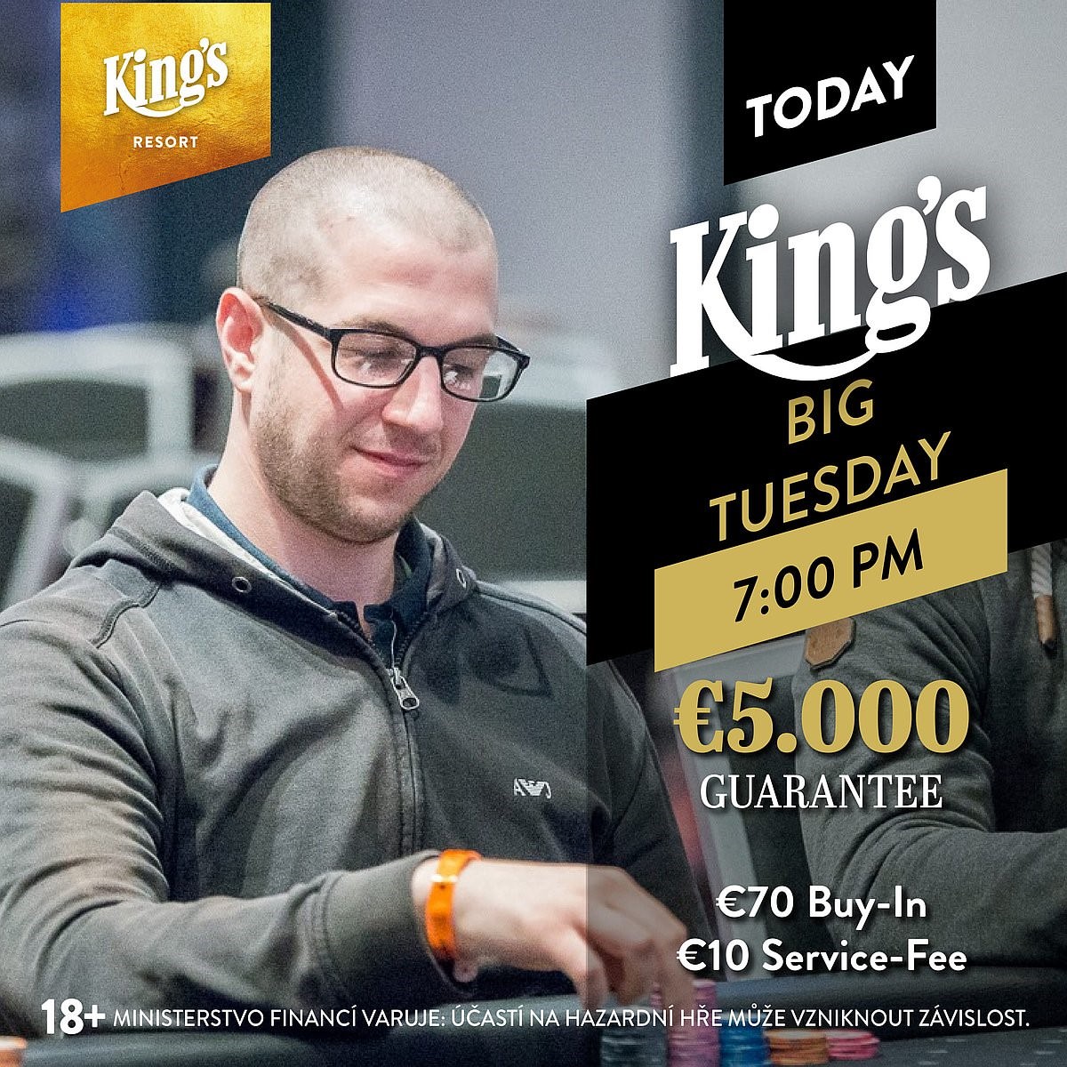 Zum Start der neuen Woche gab es am Montagabend um 19:00 Uhr im King’s Resort Rozvadov das €60+€10 King’s Big Monday Event. 47 Poker-Begeisterte strömten an die Tische und 23 von ihnen nutzten noch den Re-Entry. Damit ging es um das garantierte Preisgeld von €4.500 (abzüglich Tournament Fee €4.275), dass unter den besten Sieben ausgespielt werden sollte. Allerdings gab es einen Bubble-Deal, so dass auch Platz 8 noch €80 bekam. Gegen 01:15 Uhr platzte dann die Bubble. Entschieden wurde das Event durch einen Deal der besten Drei. Der offizielle Sieg und €1.260 gingen an King’s Regular „chiKKita banAAna“.