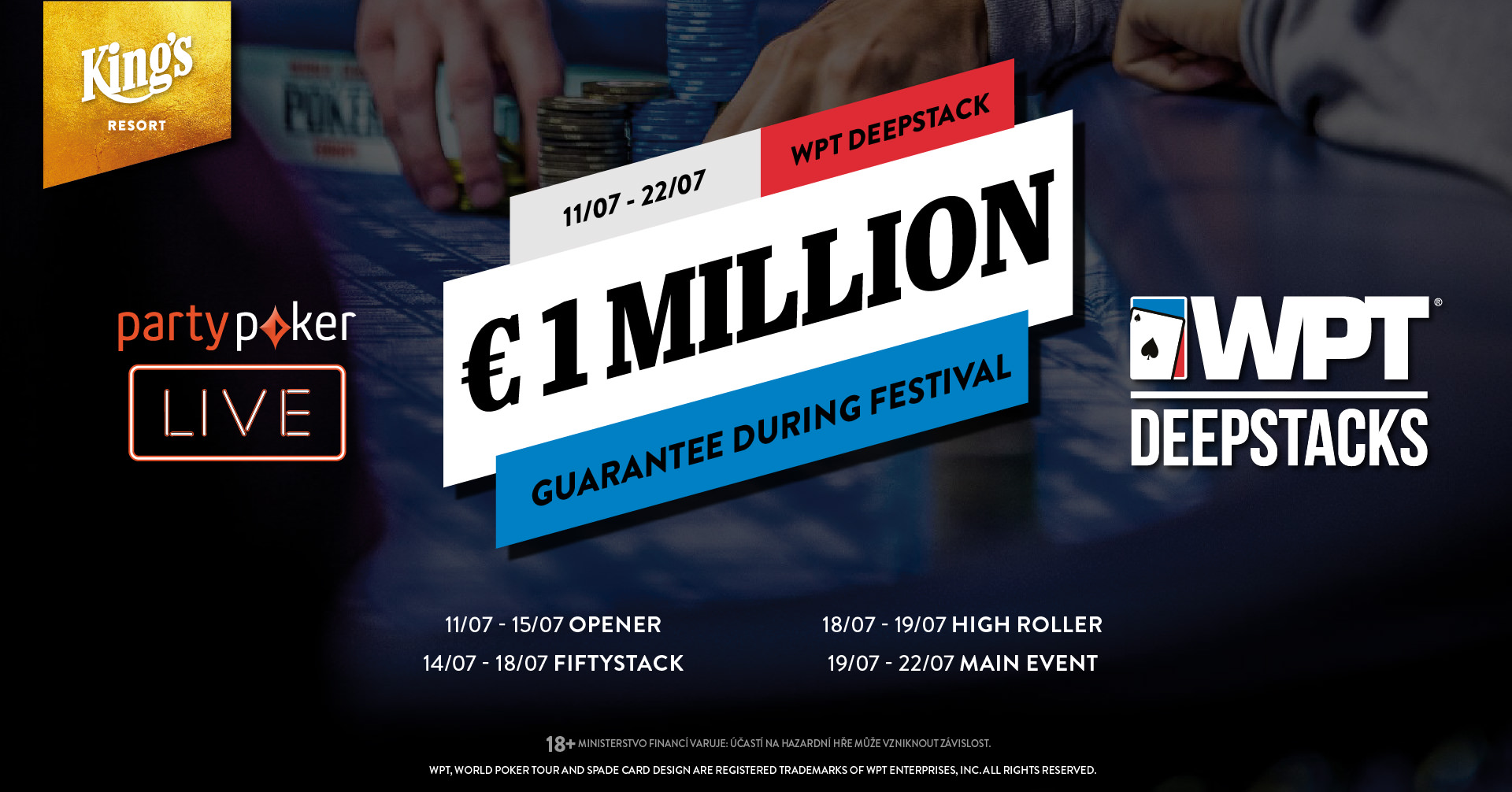 | Fri 19.07. 13:00 | Satellite to WPTDeepStacks Rozvadov | 15.000 EUR | 180 EUR | 20 EUR |