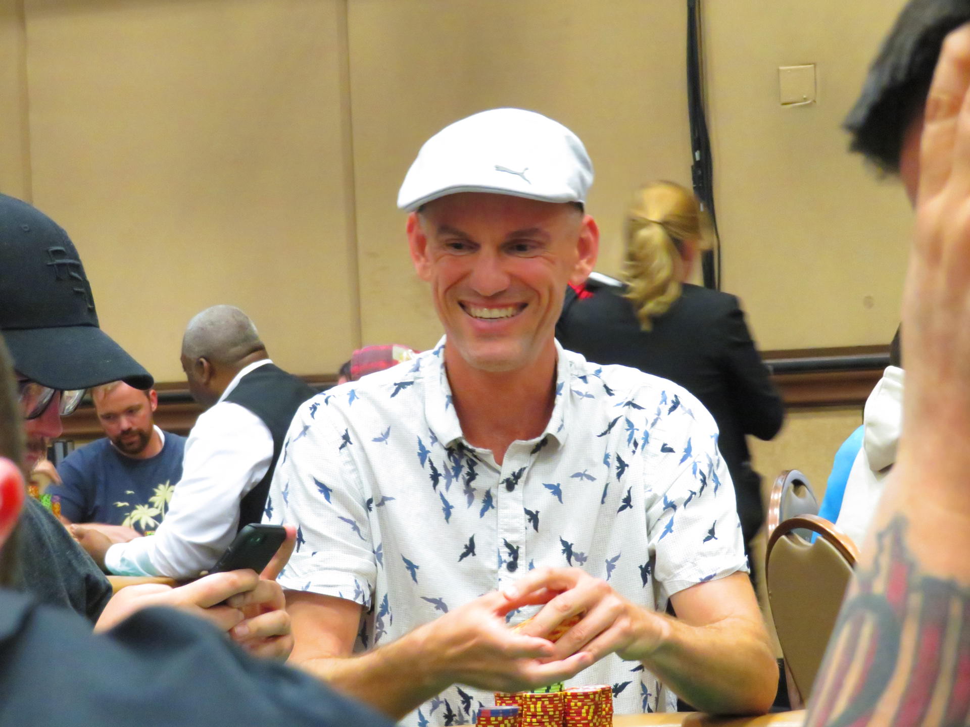 Am Ende von Tag 1 mussten sich aber bereits wieder einige Spieler verabschieden. So versuchte Cunningham auf einem Flop mit