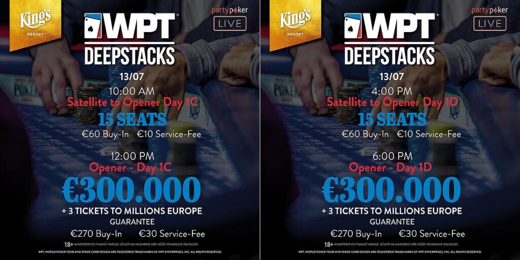 Am Samstag gibt es im King’s Resort bereits um 10:00 Uhr die Möglichkeit eins von 15 garantierten Tickets für das WPTDS Opener Event beim €60+€10 Satellite zu gewinnen.