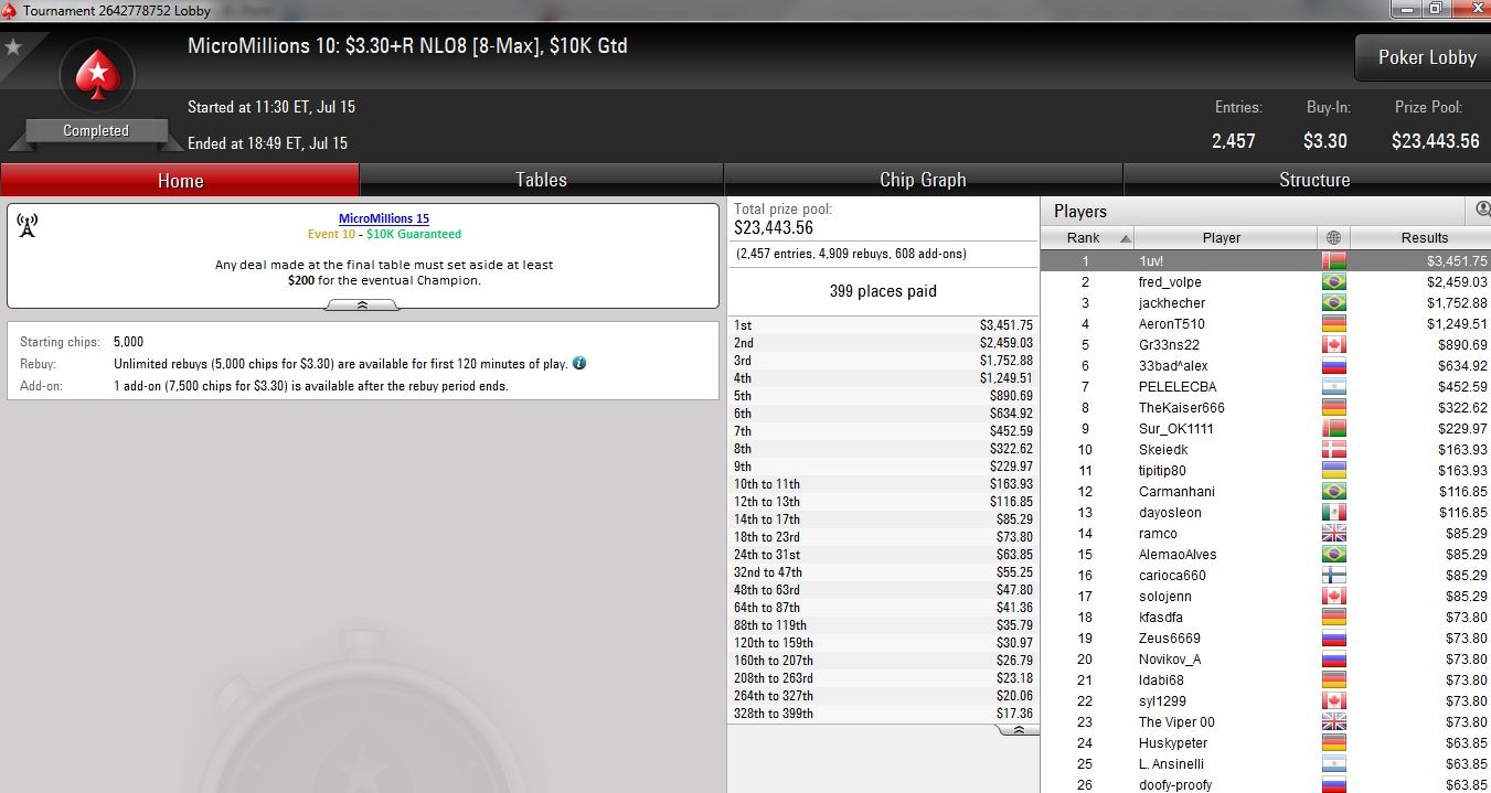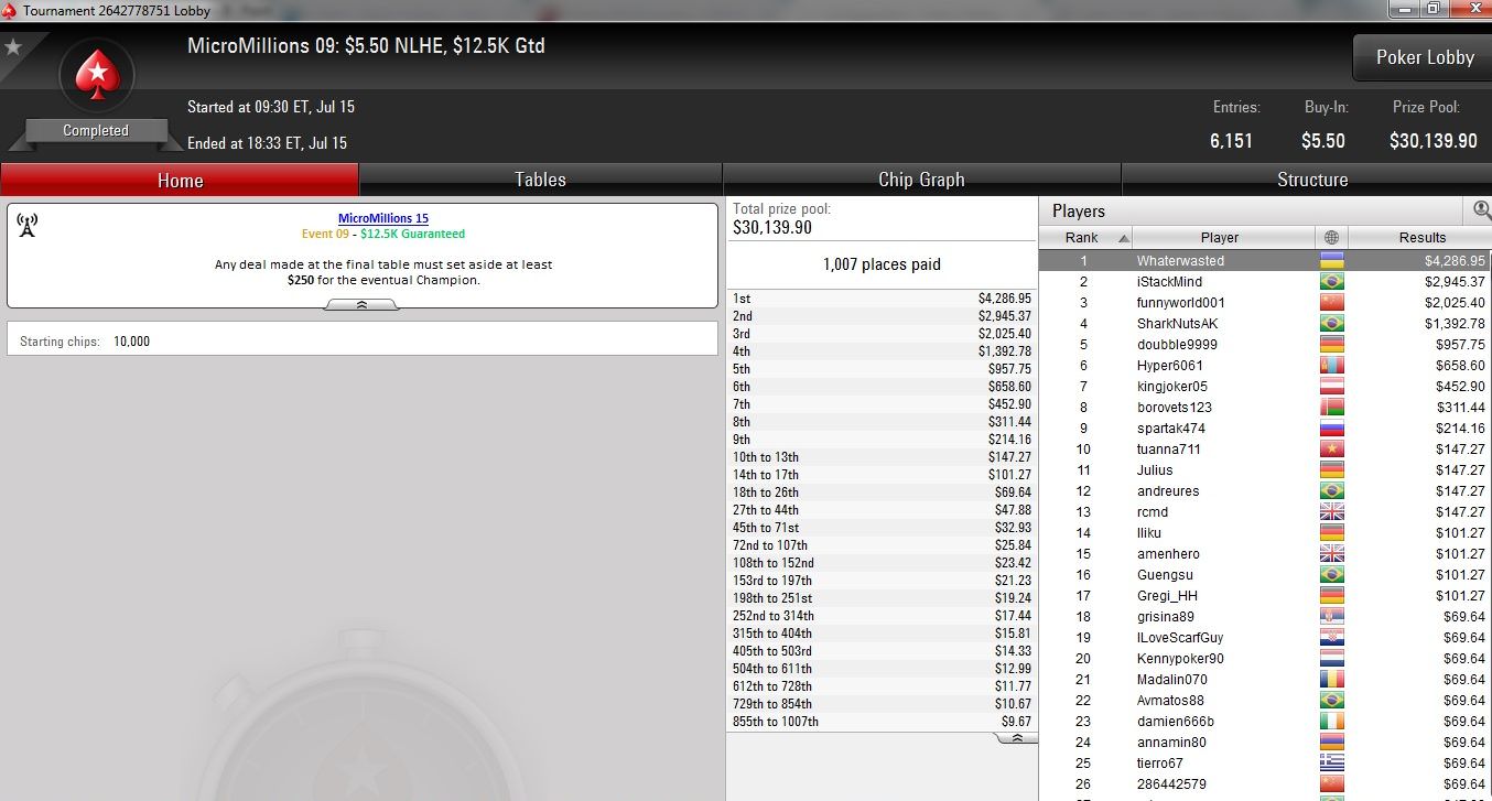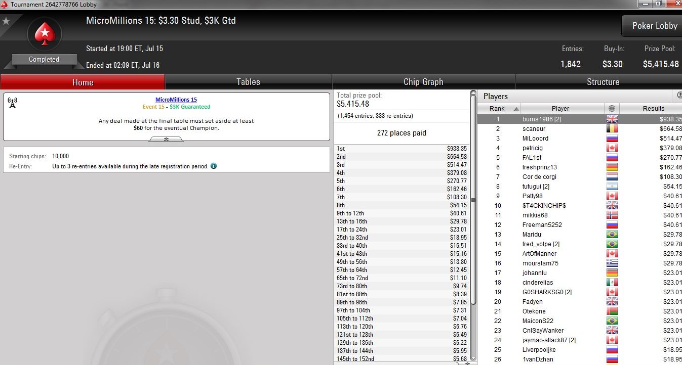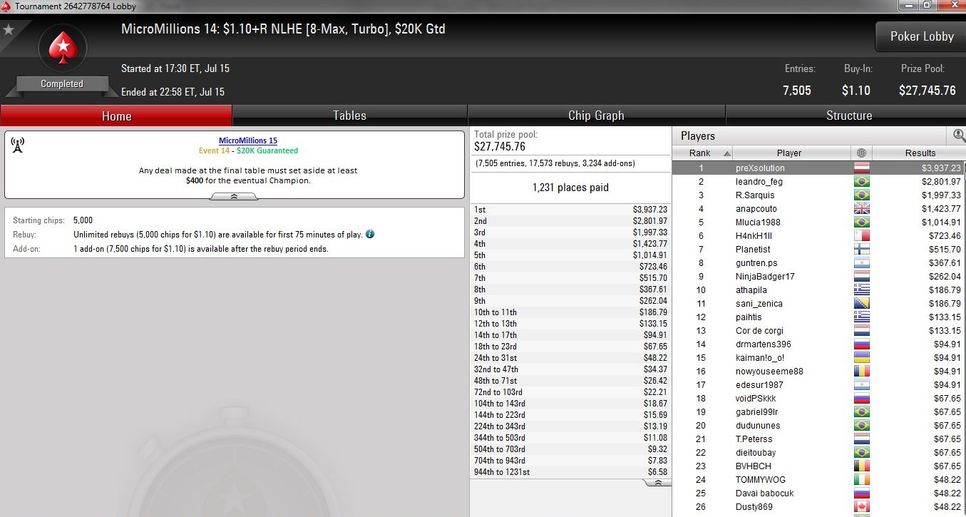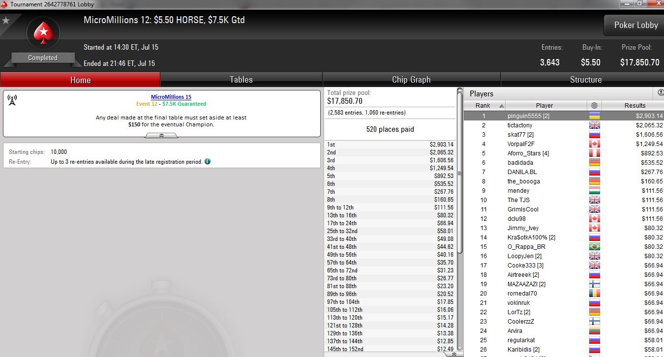 Genau 145 Turniere stehen im Rahmen der MicroMillions auf PokerStars in den nächsten zwei Wochen auf dem Programm, und die ersten Sieger wurden bereits am Wochenende gekürt.