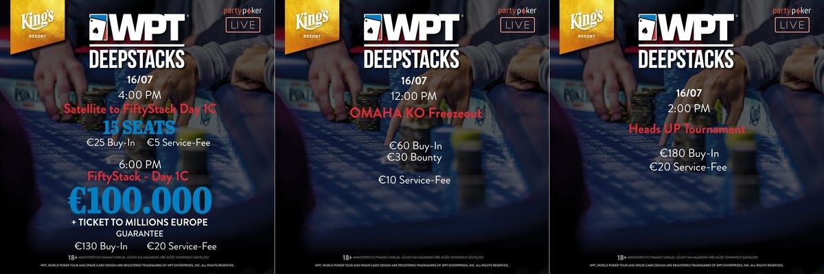 | Sun 21.07. 18:00 | WPTDeepStacks 1K CLOSER [EVENT][20] | 50.000 EUR | 1.000 EUR | 100 EUR |