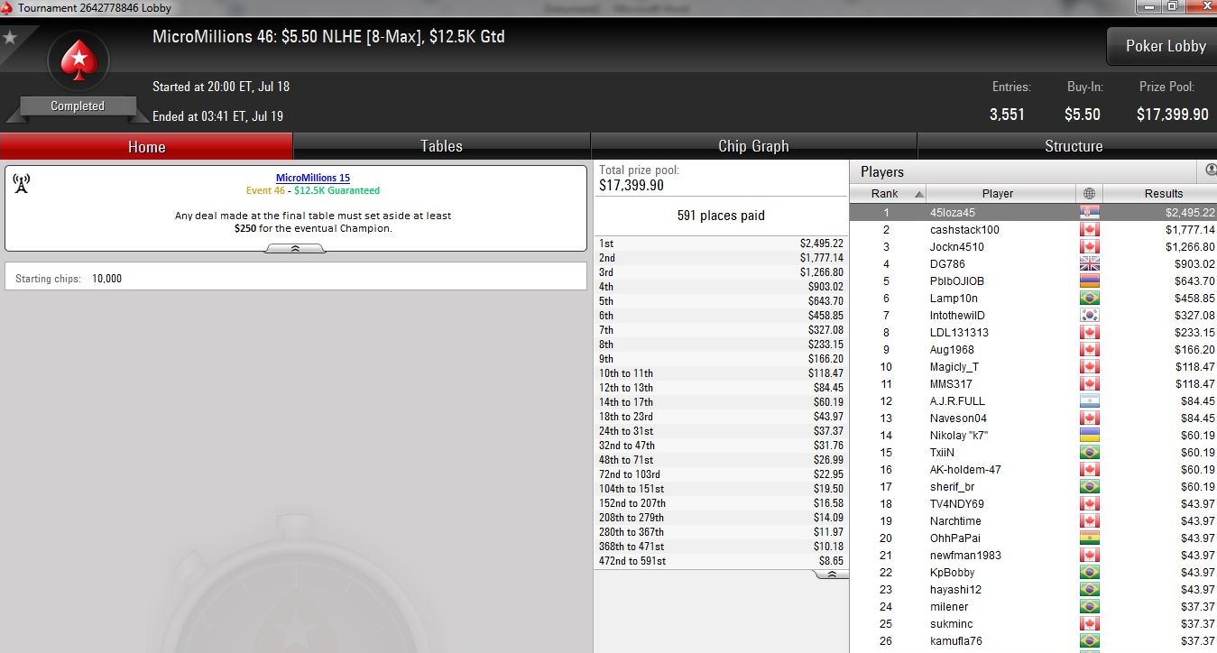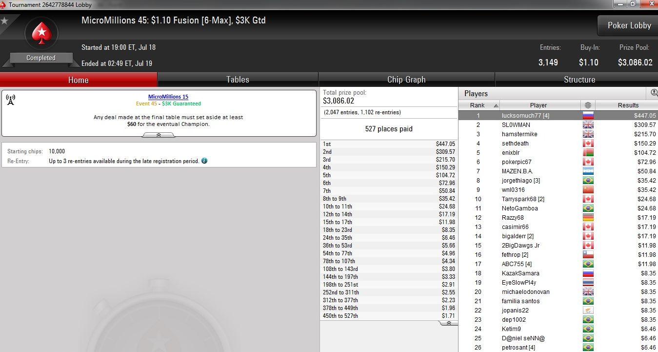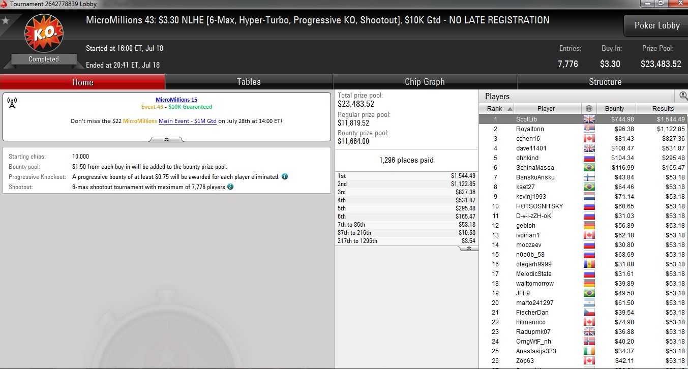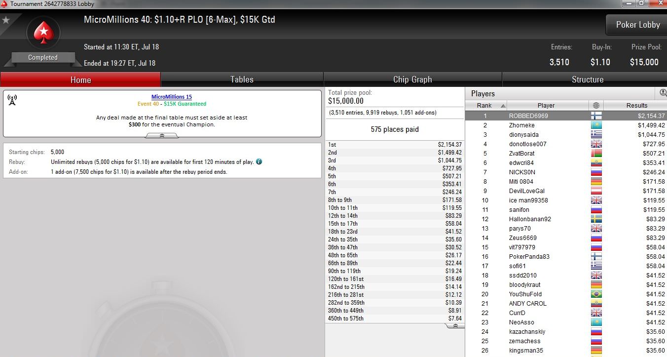 Noch genau hundert Turniere stehen bei der MicroMillions bis zum 28. Juli auf dem Programm. Weitere Informationen findet ihr auf der Turnierseite.