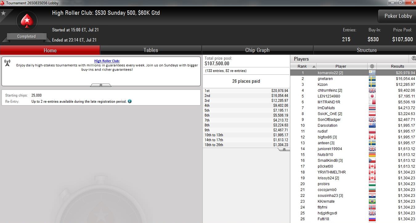 Bei den großen Sonntagsturnieren auf PokerStars konnten sich einige internationale Stars wieder einmal in Szene setzen, während die deutschsprachigen Spieler eher unterdurchschnittlich abschnitten.