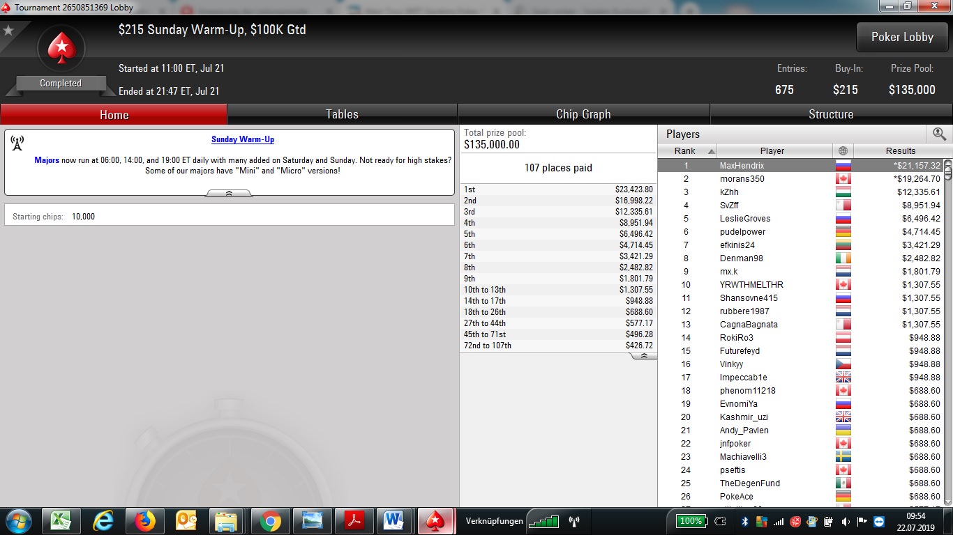 Das beste Ergebnis aus DACH-Sicht erzielte „herr_01“ mit einem zweiten Platz beim $1.050 Highroller Warm-Up, für den er knapp $27.000 erhielt.