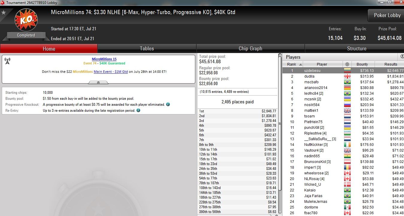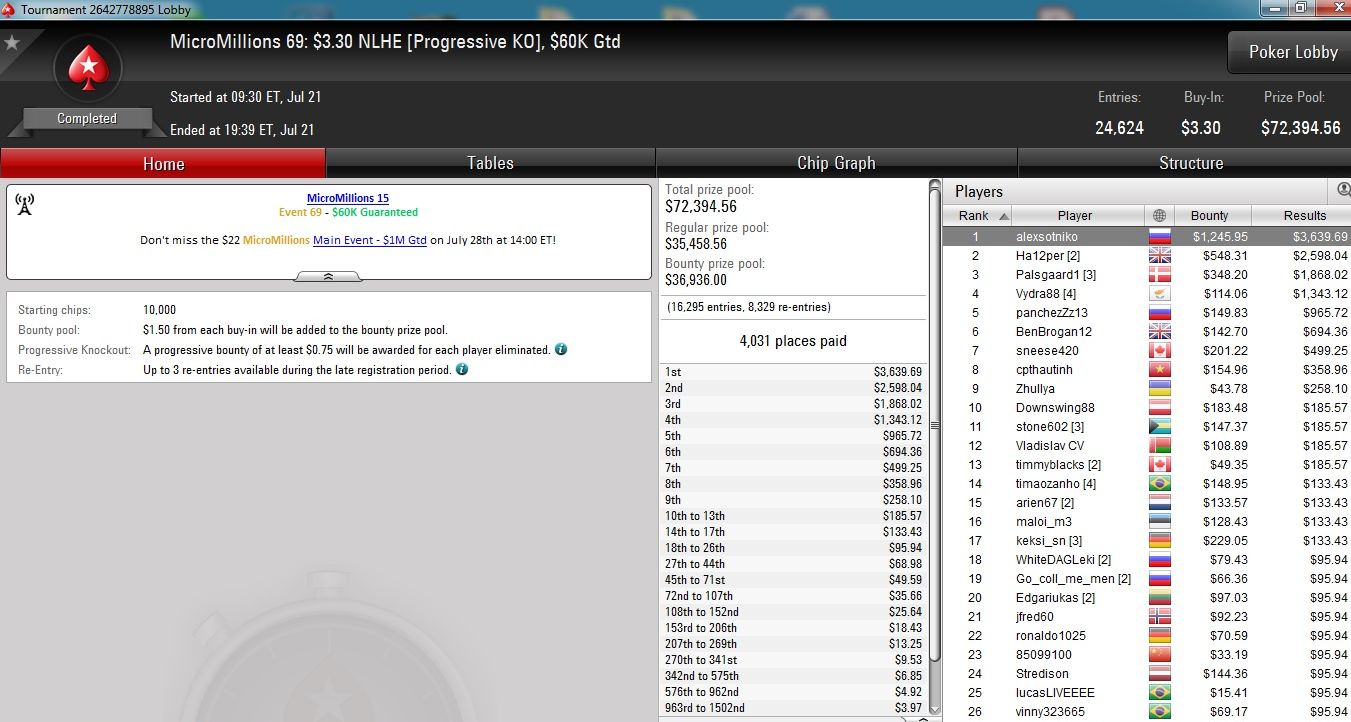 Mit 146 Turnieren in zwei Wochen sind die MicroMillions auf PokerStars definitiv die größte Turnierserie mit kleinen Buy-Ins im Internet.