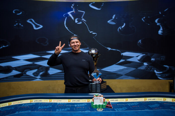 Den Schlusspunkt unter eine phänomenale MILLIONS Turnierwoche setzte das #1.000+100 Pot Limit Omaha (Event #18). 36 Teilnehmer,plus 12 Re-Entries, kamen am Sonntag um 14 Uhr zusammen, um dem partypoker LIVE Event einen würdigen Abschluss zu bereiten. Die €47.500 im ausgezahlten Prizepoo, teilten die letzten 7 unter sich auf. Darunter war mit „OFC“ auf Platz 4 (€5.500) nicht nur ein Fan der Pokervariante mit 12 eigenen Karten, sondern gleichzeitig der einzige deutsche Spieler im Preisgeld. Der Finaltisch war insgesamt sehr international: Mit dem Slowaken Marek Tatar (7. Platz, 2.000), der Niederländerin Maaike Wassink (6., €3.000), dem US-Amerikaner „Alex Smith“ (5., €4.000), dem Russen Aleksanr Denisov (3., €7.500) und dem Kanadier Peter Chien (2., €10.500) war ein großes Spektrum der Poker-Weltkarte abgedeckt. Aber an einem Spieler, der es gar nicht weit ins King’s hat führte (mal wieder) kein Weg vorbei. Poker-Multitalent und King’s-Regular Marek „7Andar“ Blasko gewann mit dem Pot Limit Omaha Turnier bereits seinen 21.(!) Titel im Pokerroom in Rozvadov. Der Seriensieger, u.a. Champ der German Championships of Poker (GCOP) und des Spanish Poker Festivals (SPF), konnte eine weitere Trophäe und €15.000 mit ins Waagtal nehmen.