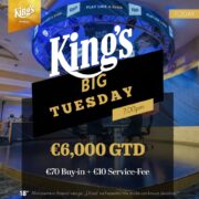 Im King’s Resort laufen auch unter der Woche immer heiße Cash Games. Hier geht der Spaß bereits bei Blinds €1/€3 THNL oder €2/€2 PLO und einem Minimum Buy-In von €100 los.