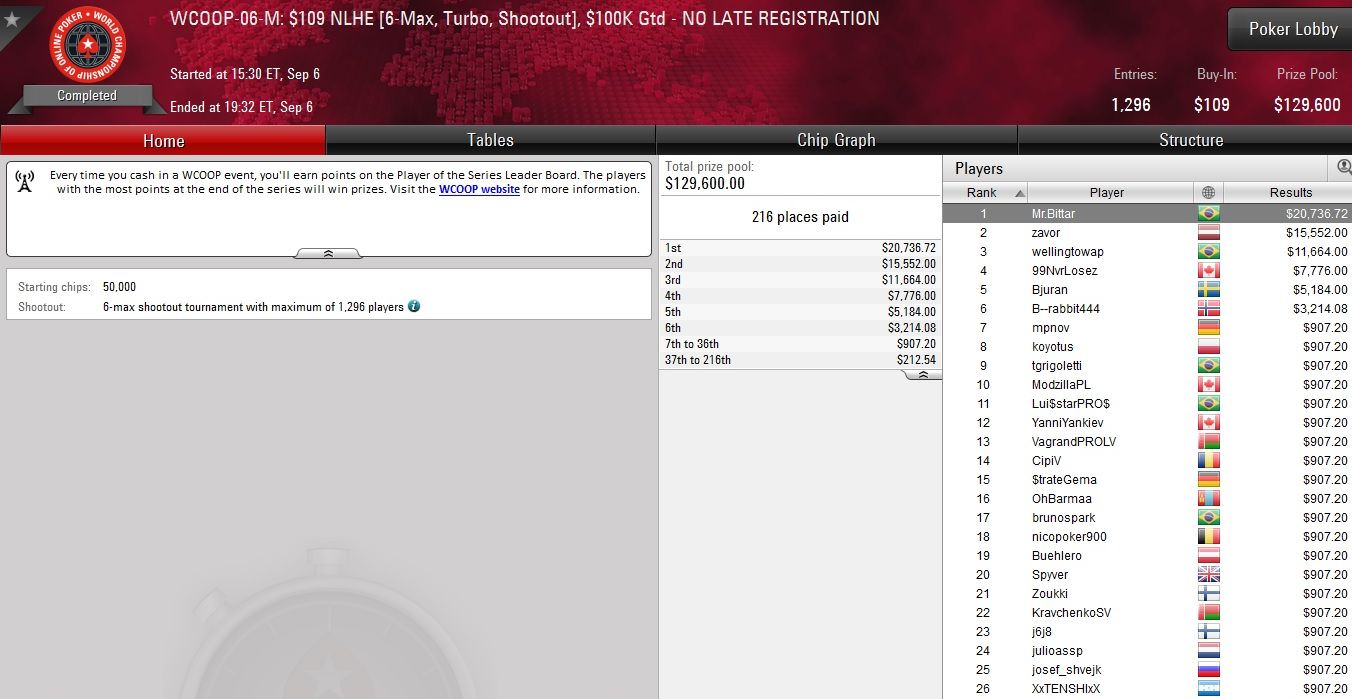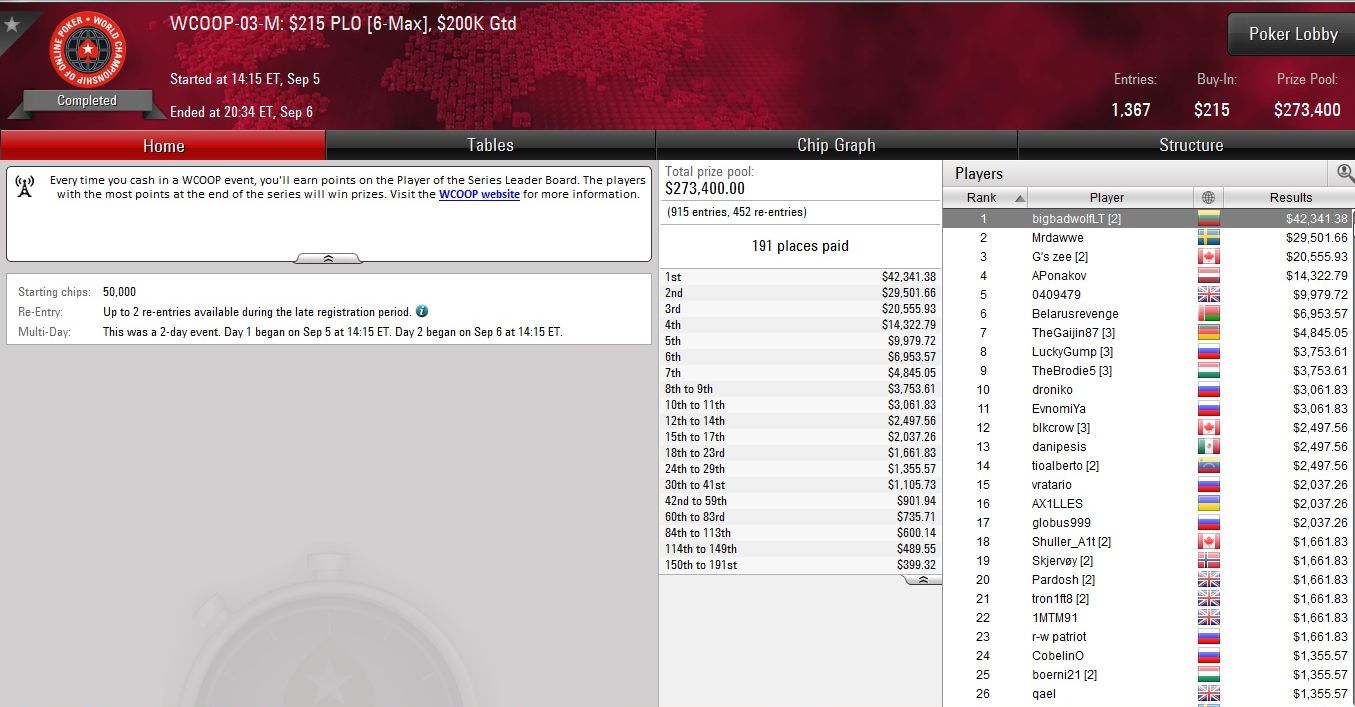 Einen tollen Start in die WCOOP feierte auch der Österreicher Stefan „mindgamer“ Jedlicka, der bei Event 6, einem $1.050 Turbo Shootout, nur dem Schweden „eijseijs“ den Vortritt lassen musste. Als Belohnung gab es ein Preisgeld von gut $33.000.