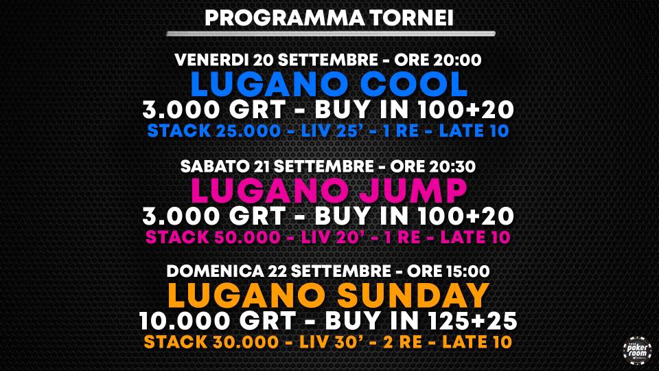 Wer Lust auf das nächste große MTT-Highlight der italienischen und schweizer Pokercommunity bekommen hat, erhält ab sofort im Casino Lugano die Chance, täglich drei Tickets für das 60 CHF IPS-Satellite zu gewinnen. Vom 20. September bis 27. Oktober erhalten jeweils der Tagesturniersieger, sowie der Chipleader zur ersten Pause (nach Level 5), sowie der Chipleader nach Ende der Late Registration (nach Level 2) ein Satellite-Ticket. Das IPS-Satellite findet dann am 1. November ab 15:00 Uhr, statt, in dem 5 Preispakete à 550 CHF zum Italian Poker Sport Festival im King’s Resort Rozvadov garantiert sind.