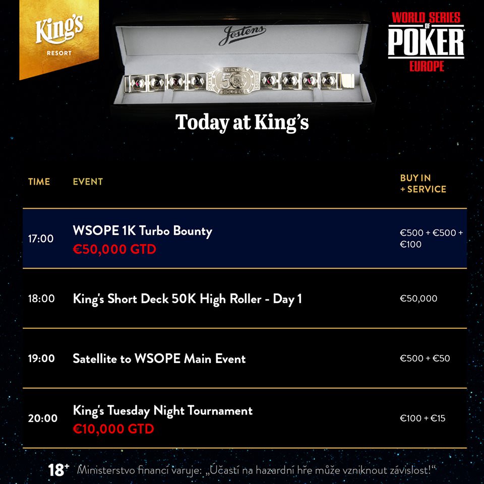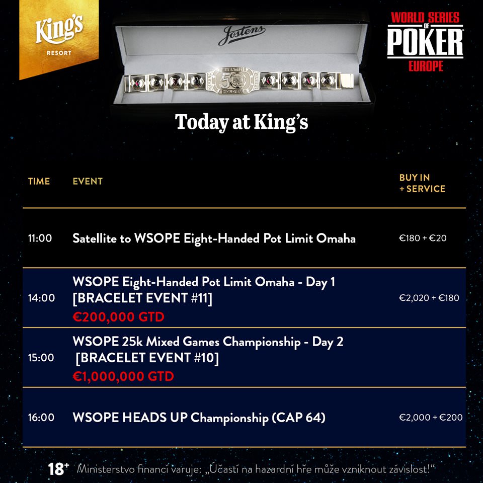 Im King’s Resort Rozvadov geht es am Dienstagmorgen um 11:00 Uhr mit dem €180+€20 Satellite für den €2.200 WSOPE PLO 8-Max Event los. Hier sind fünf Tickets garantiert.