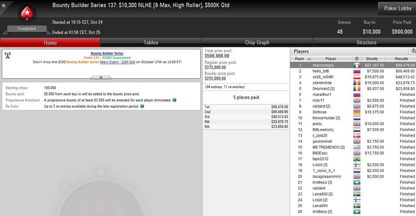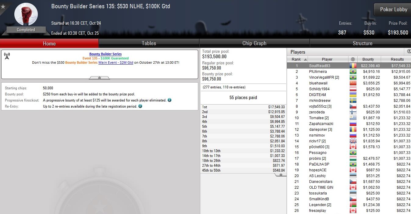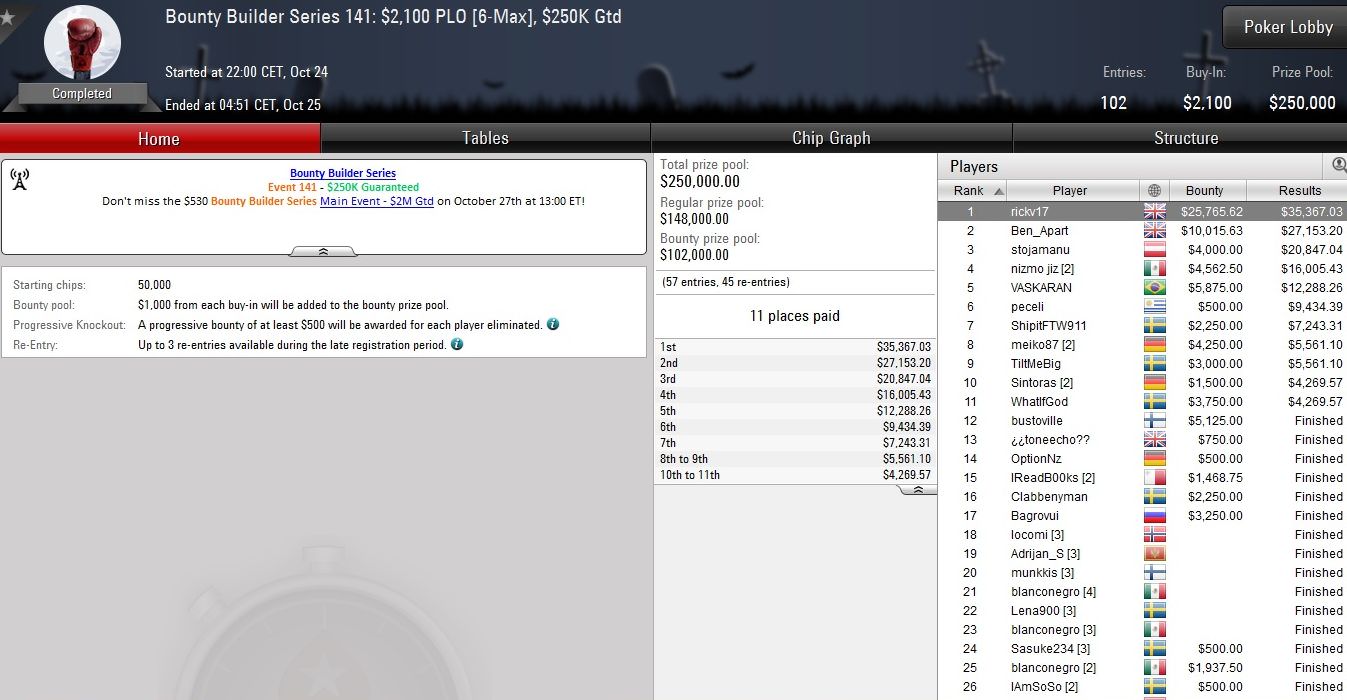 Bei der Bounty Builder Series auf PokerStars standen gestern wieder einige wichtige Entscheidungen an und dabei wurden gleich mehrfach sechsstellige Gewinnsummen garantiert.