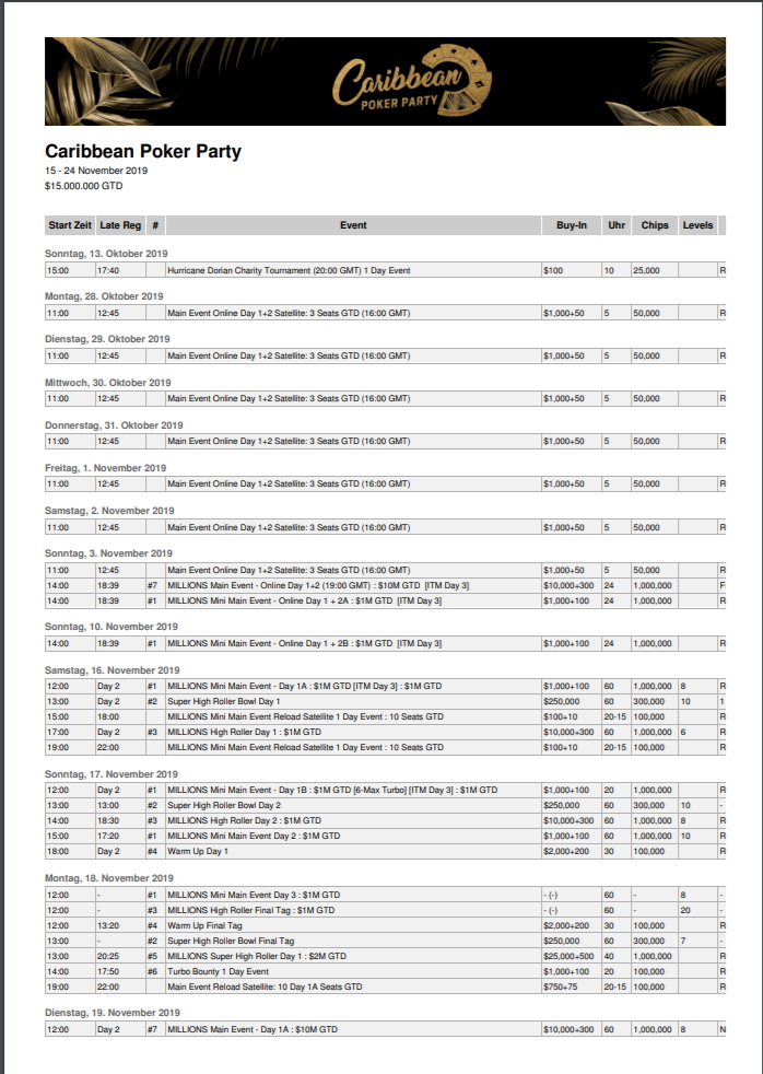Qualifier für die Caribbean Poker Party in Baha Mar am heutigen Sonntag