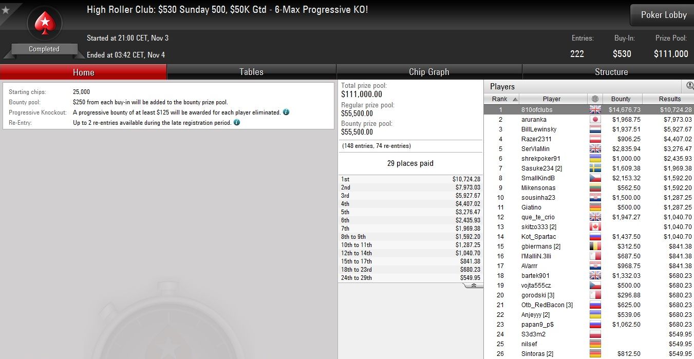 Wie jeden Sonntag stand auch gestern wieder auf PokerStars eine Reihe von hochrangigen Turnieren an.