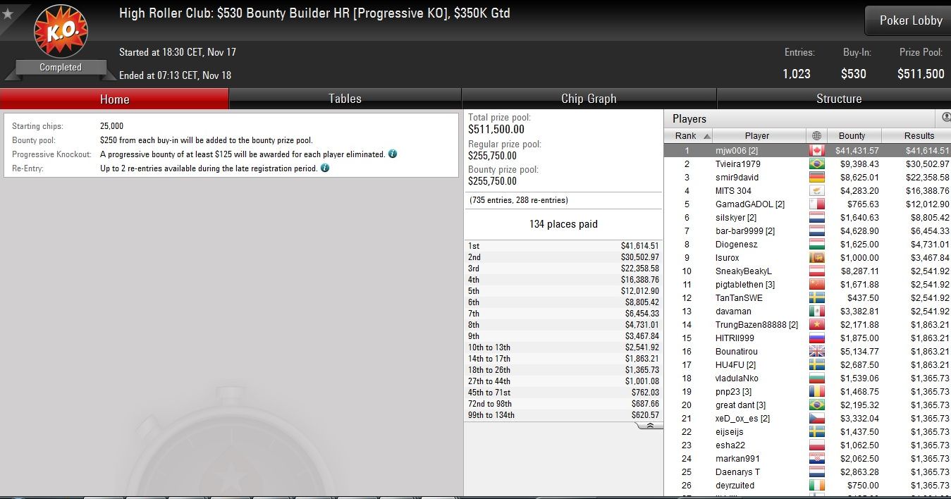 Einen dicken Cash holte auch der Kanadier „mjw006“, der beim HR Bounty Builder alle Konkurrenten hinter sich ließ und über $83.000 abräumte.