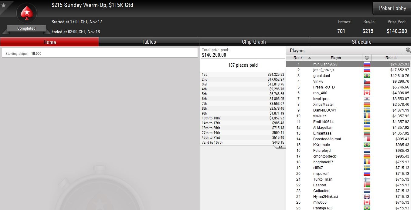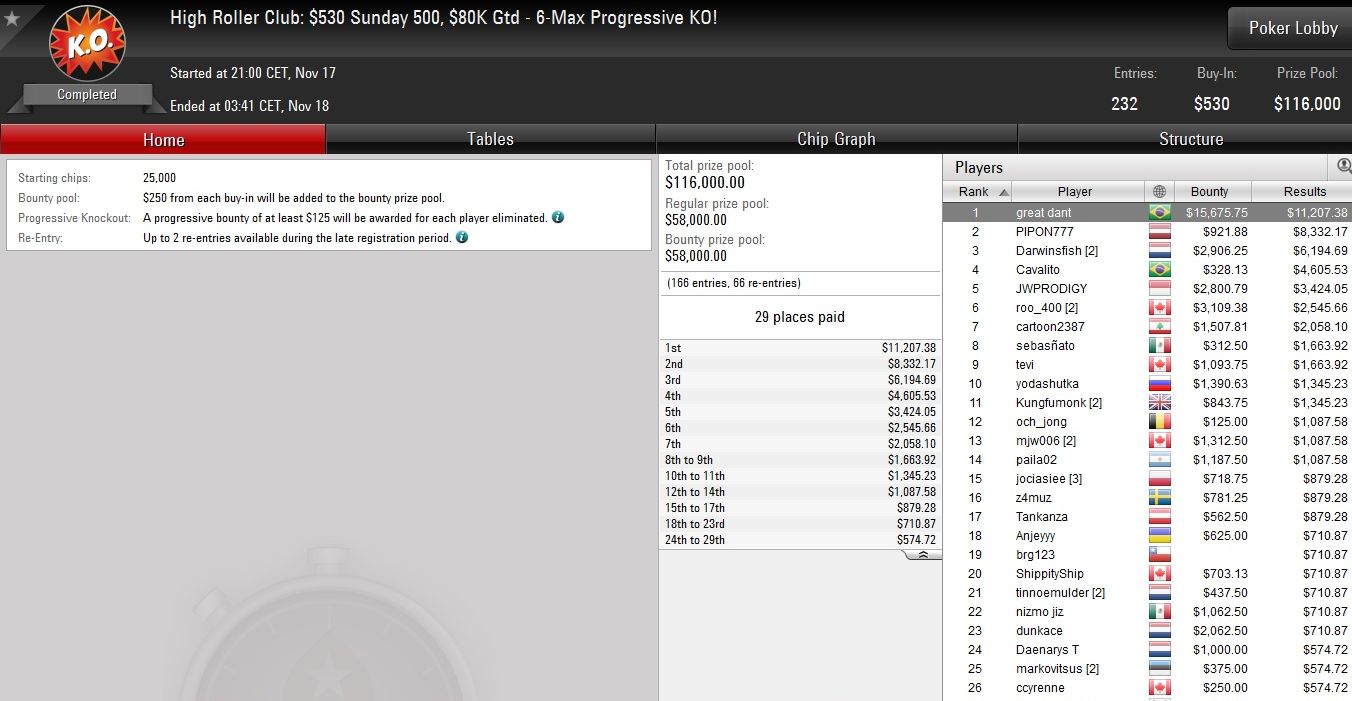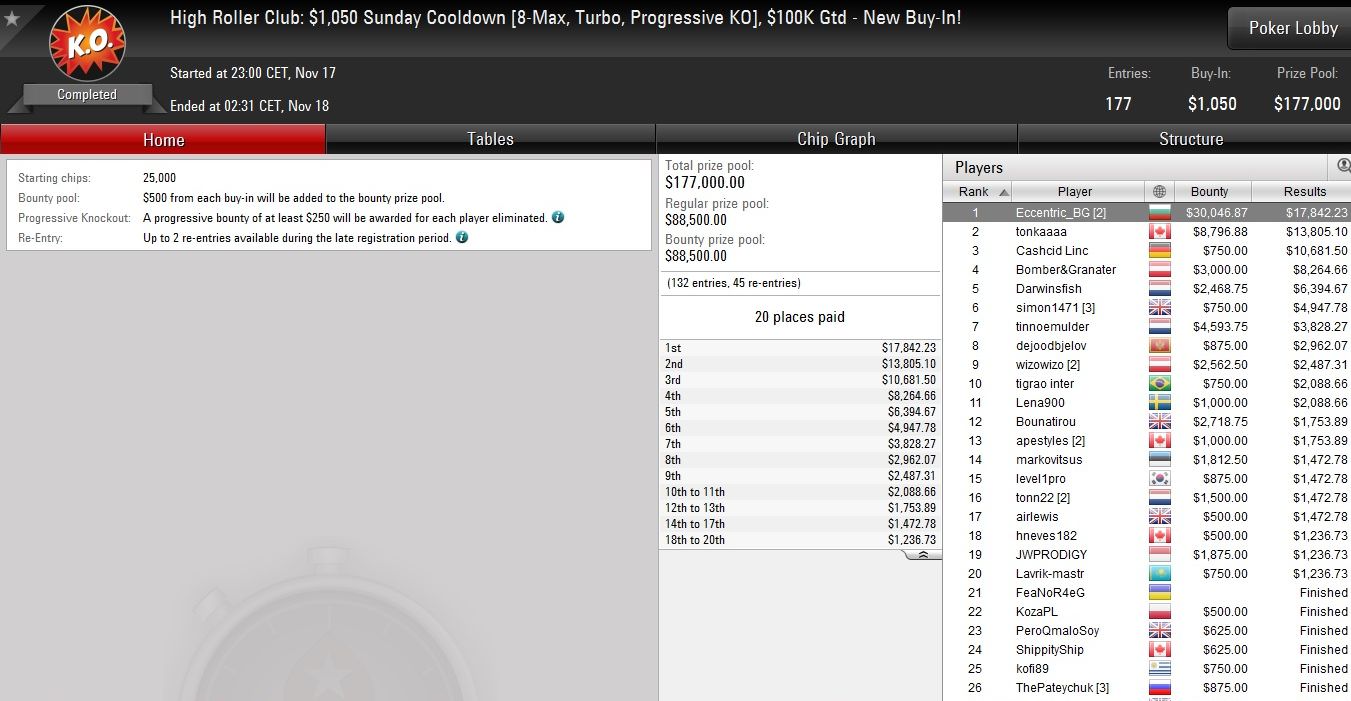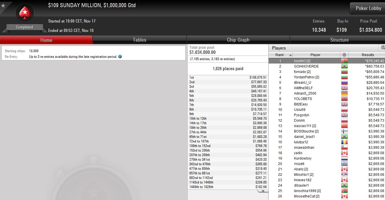 An Preisgeldern kamen so rund $95.000 zusammen, was nicht einmal von den Gewinnern der Sunday Million getoppt wurde.