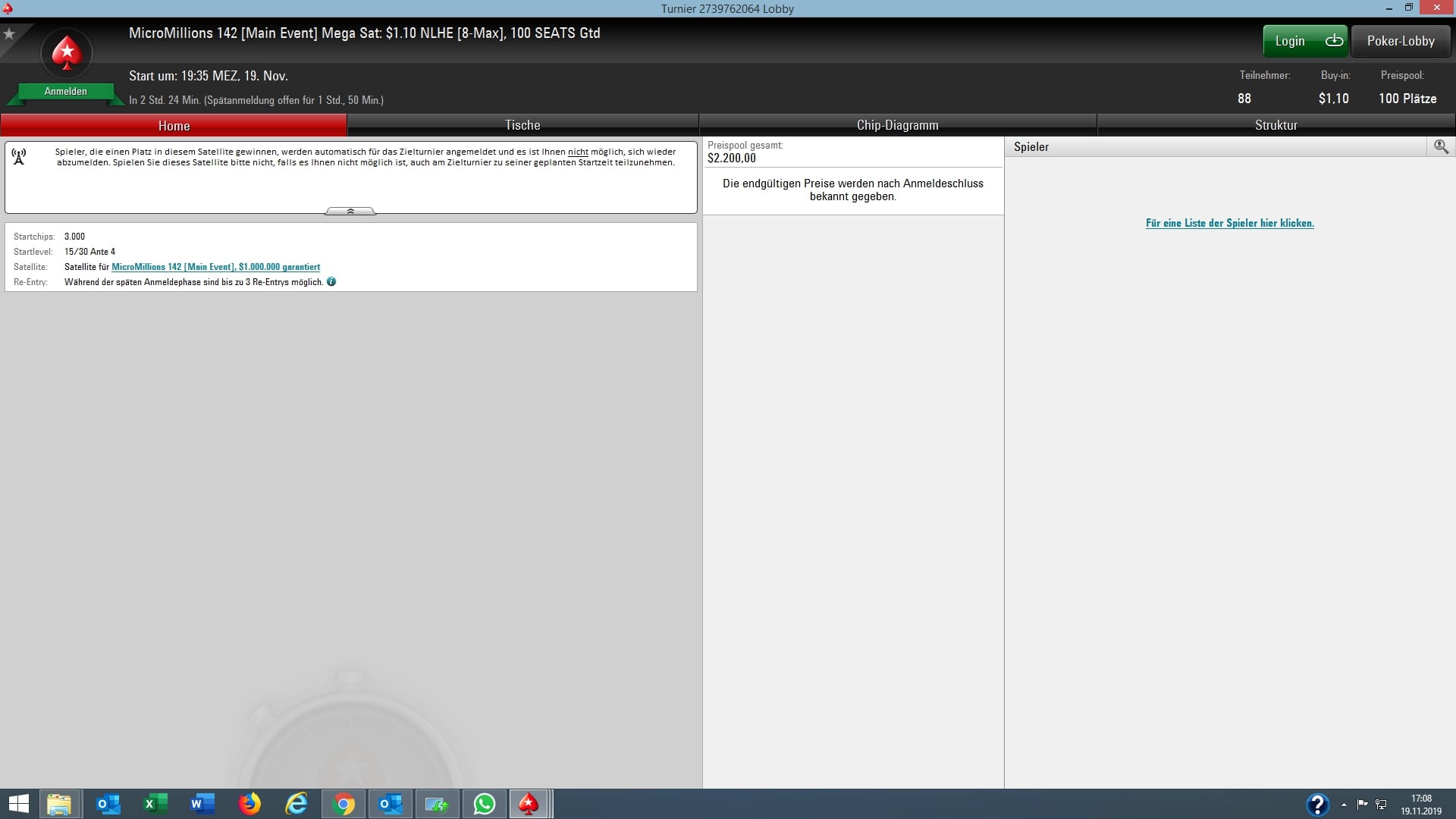 Für dieses Turnier-Highlight, gibt es noch bis Samstag täglich um 19:35 Uhr, ein Mega Satellite. Für ein Buy-In von nur $1,10, werden jeweils 100 Main Event Tickets garantiert.