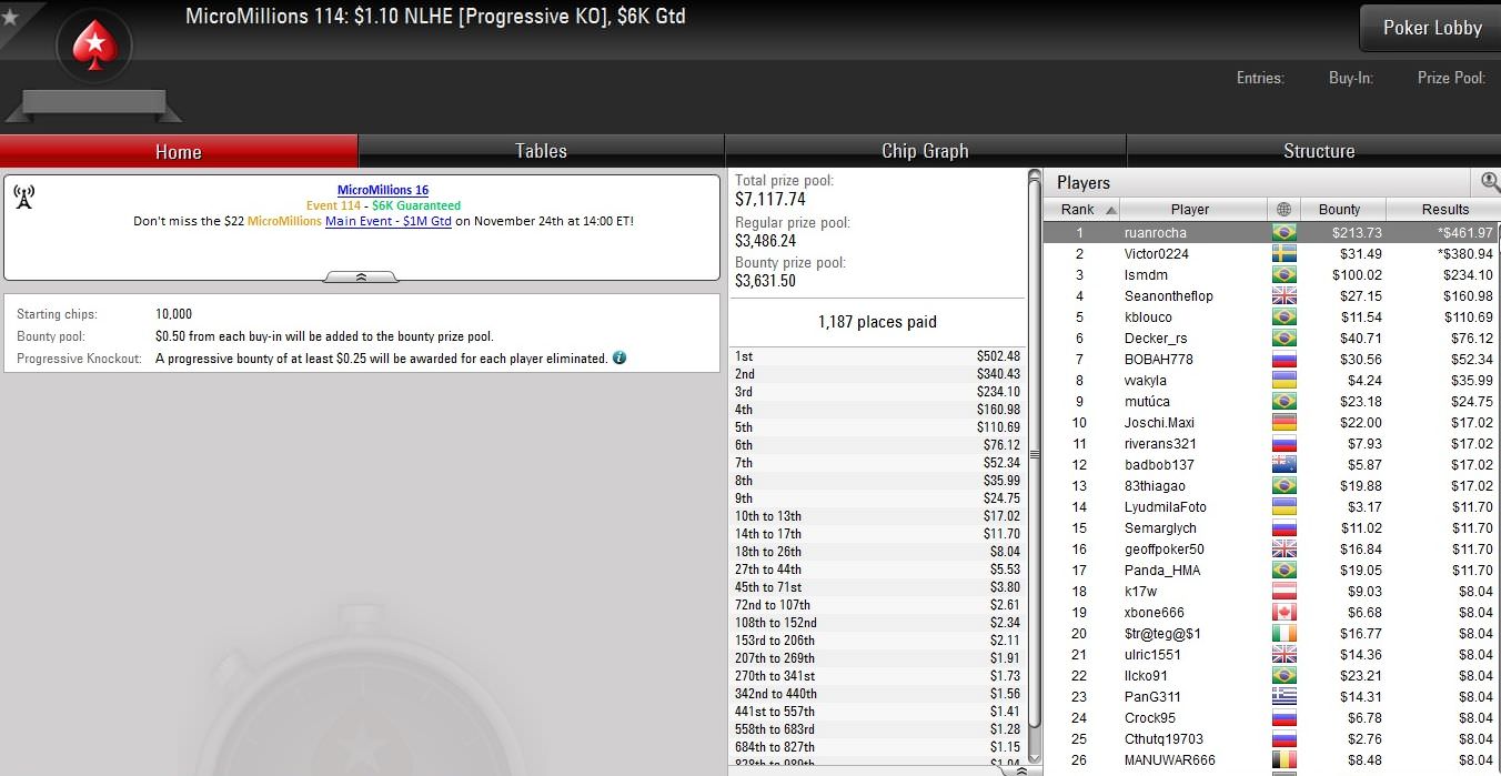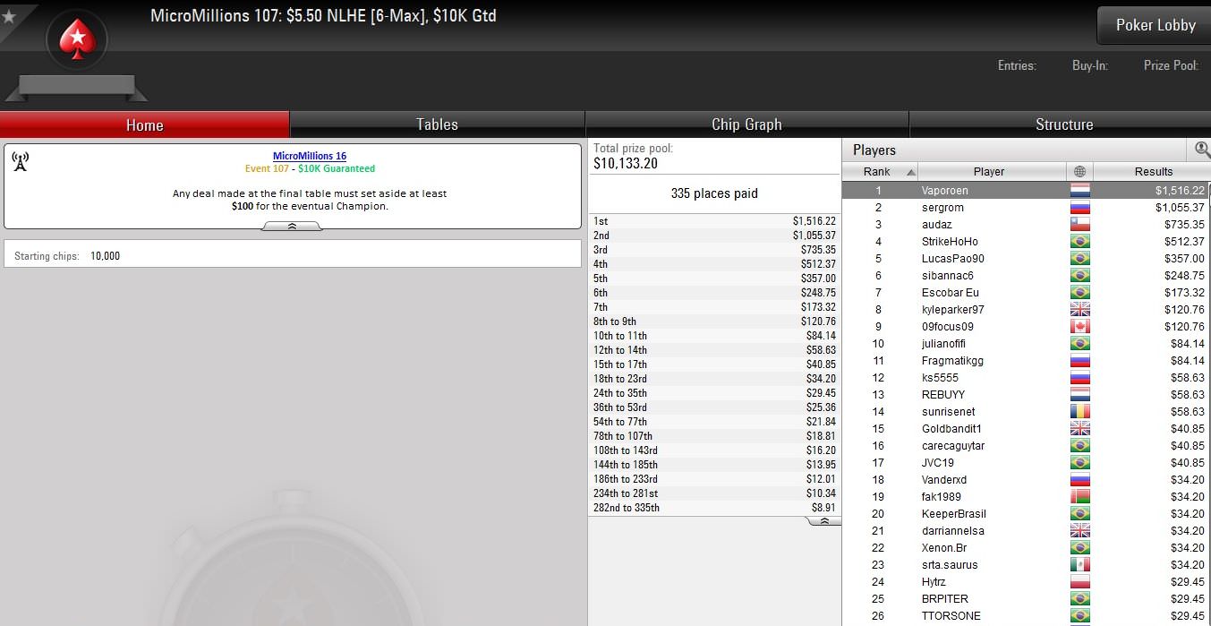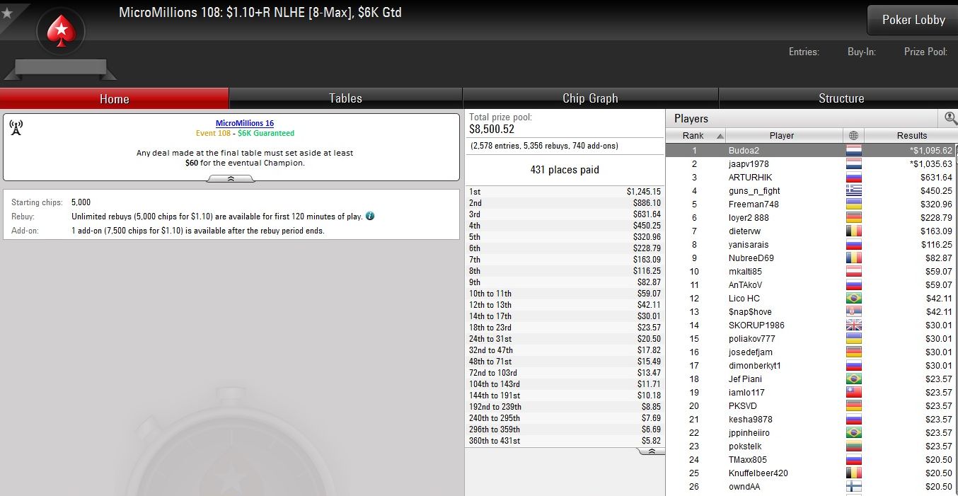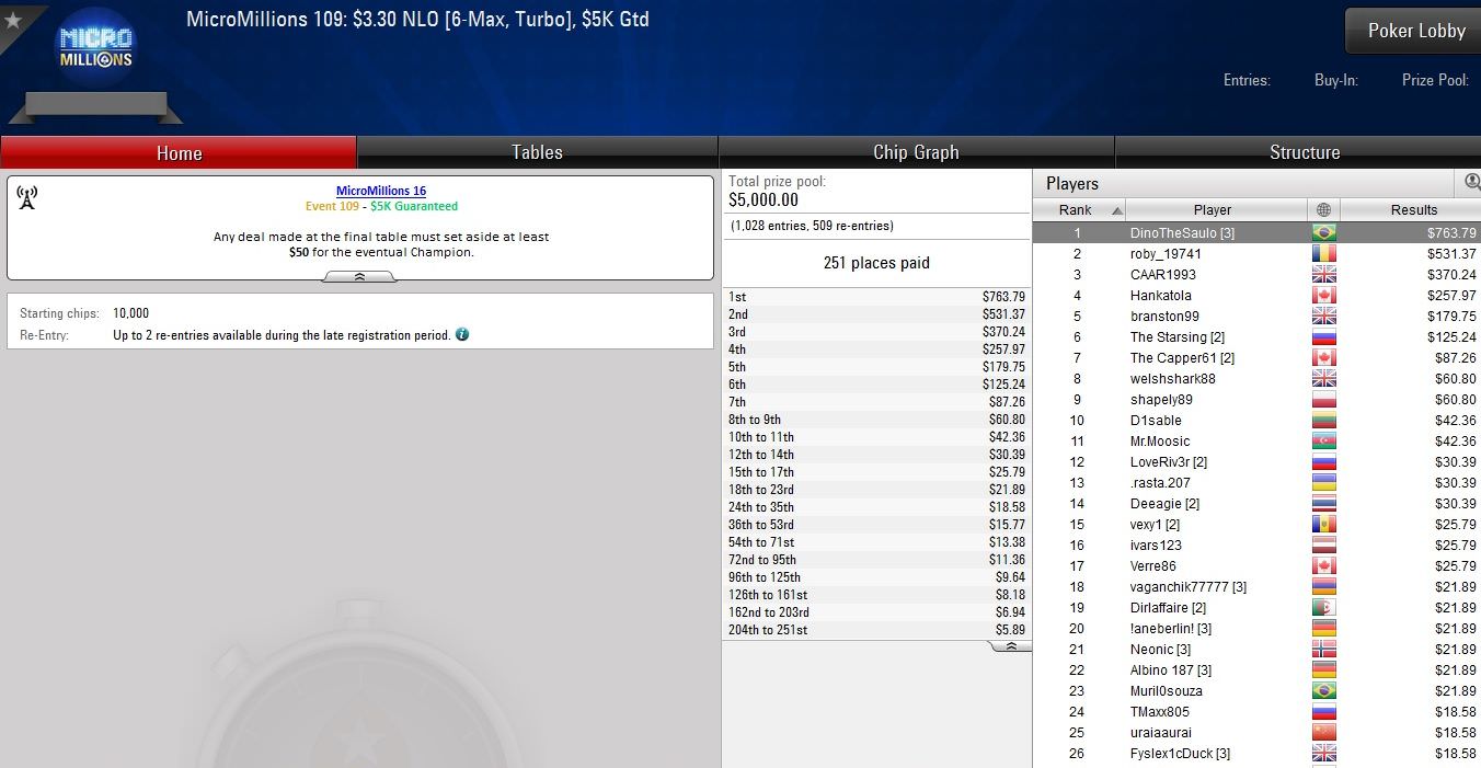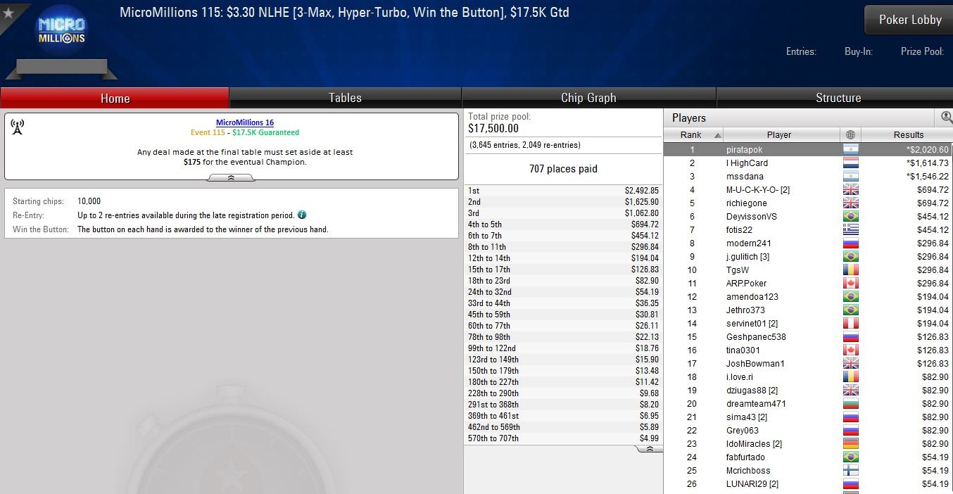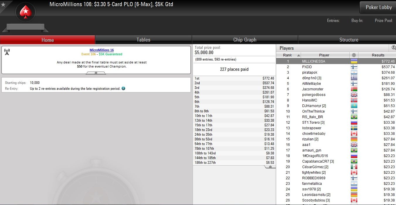 Bis Sonntag wird bei den Micro Millions noch gepokert, was das Zeug hält. Insgesamt 147 Turniere stehen auf dem Programm, darunter auch das $22 Main Event. Zunächst geht es aber heute mit den Events #116 bis #125 weiter.