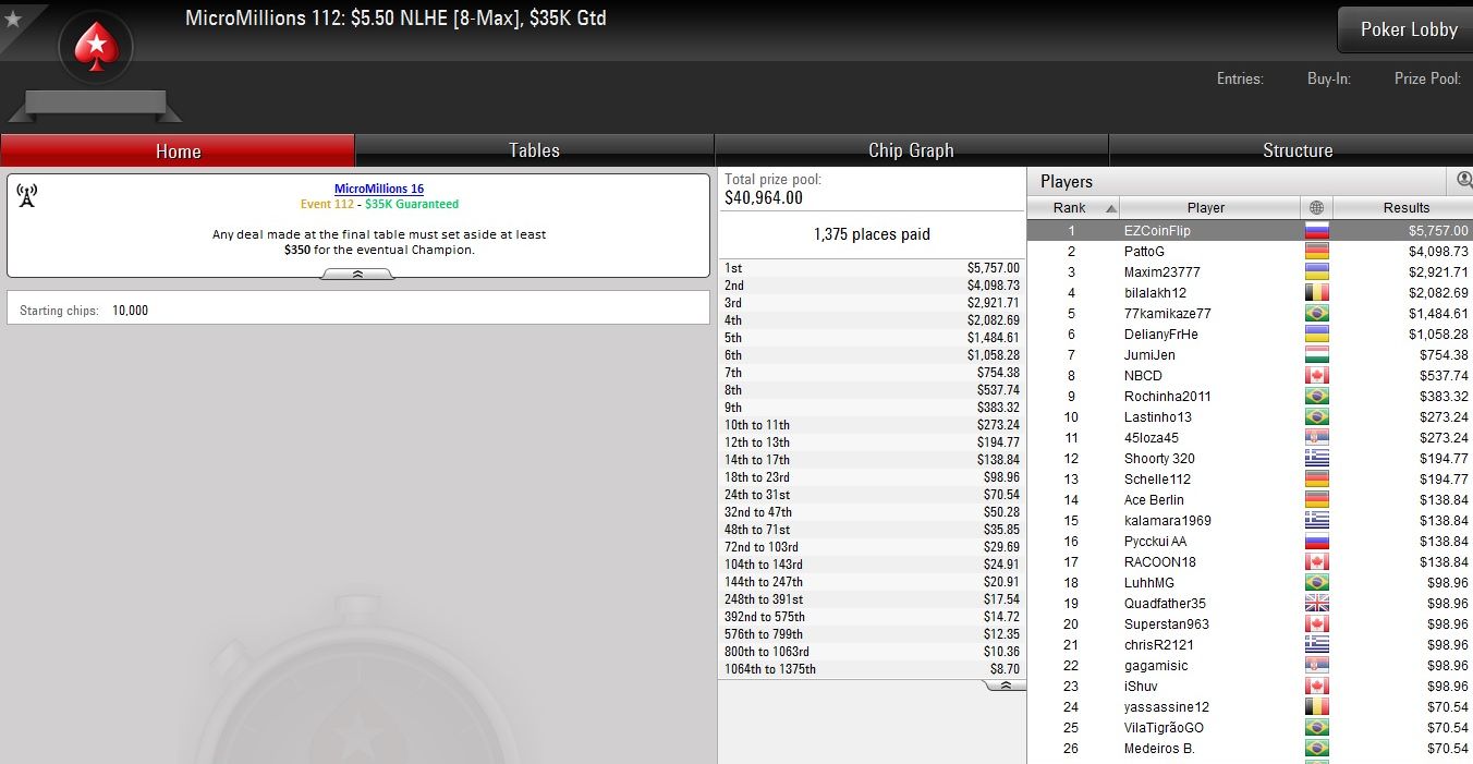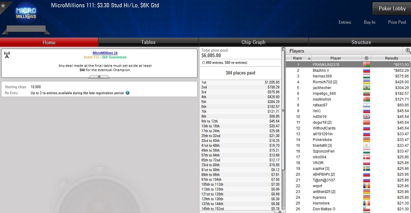 Nach den erfolgreichen Tagen zuvor mussten sich die deutschsprachigen Spieler bei den Micro Millions auf PokerStars am gestrigen Donnerstag mit kleineren Brötchen begnügen.