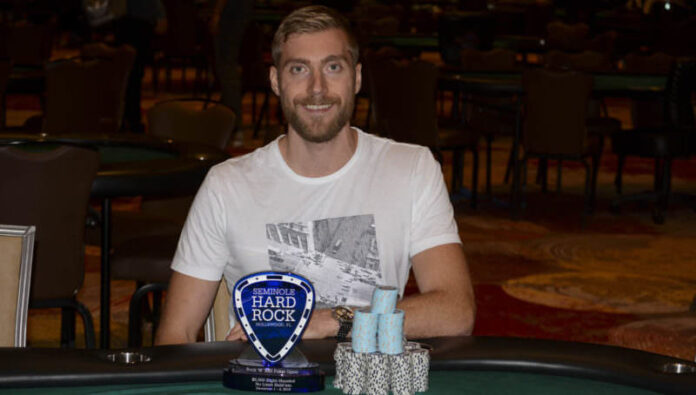 Im Rahmen der WPT Seminole Rock & Roll Open, die vom 20. November bis zum 4. Dezember in Hollywood, Florida, laufen, startete der Hesse im 20. Event. 88 Spieler zahlten hier das Startgeld von $5.000 und generierten einen Preispool von $418.000, der den garantierten ($200.000) deutlich überstieg. Der deutsche Top-Spieler, dessen Karriere mit 7-stelligen Earnings in jedem der letzten 3 Jahre noch einmal deutlich an Fahrt aufgenommen hat, war in dem Mehrtagesevent immer vorne bei der Musik dabei. 11 Teilnehmer sollten die Preisgeldränge, beginnend mit $11.620 Mincash, erreichen. Unter den 8 Spielern am Finaltisch musste es der Wahl-Engländer unter anderem auch mit Scott Margereson aufnehmen, der im April letzten Jahres an gleicher Stelle die WPT Championship gewonnen hatte. Nach dem Ausscheiden von Timothy Flank, war Margereson dann auch einer der vier letzten Spieler, die sich auf einen Deal einigten. Vierter wurde der US-Amerikaner Ray Qartomy für $53.780. Der Brite Margereson wurde Dritter und nahm $75.120 aus dem Turnier mit. Runner-Up mit nahezu dem gleichen Payout ($85.449) wie der Sieger wurde Joey Weissmann aus den USA. Und für den deutschen Ausnahmespieler gab es neben der Trophäe noch $86.581 an Prämie.