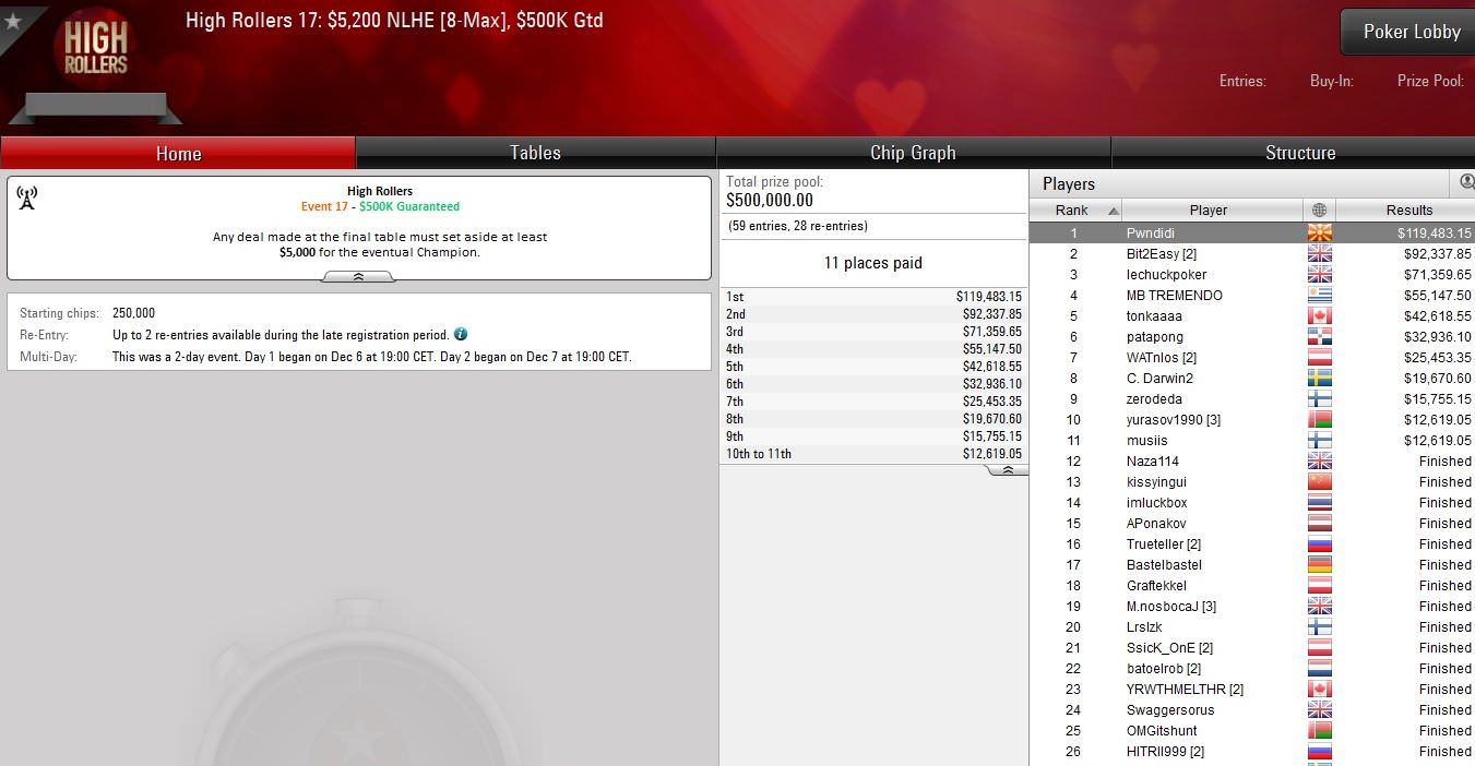 Den Sieg machten Luke „Bit2Easy“ Reeves und Alexandros „Pwndidi“ Theologis unter sich aus. Am Ende setzte sich der Grieche durch und kassierte die Siegprämie von gut $119.000.