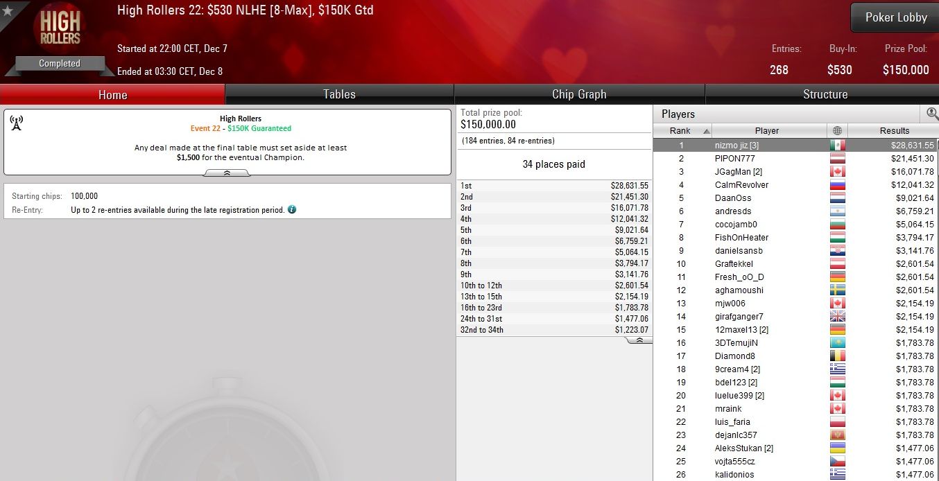 Eine Woche lang sind auf PokerStars die Spieler mit großen Bankrolls im Mittelpunkt, denn bei den High Rollers stehen 27 Turniere mit Buy-Ins von mindestens $530 auf dem Programm.
