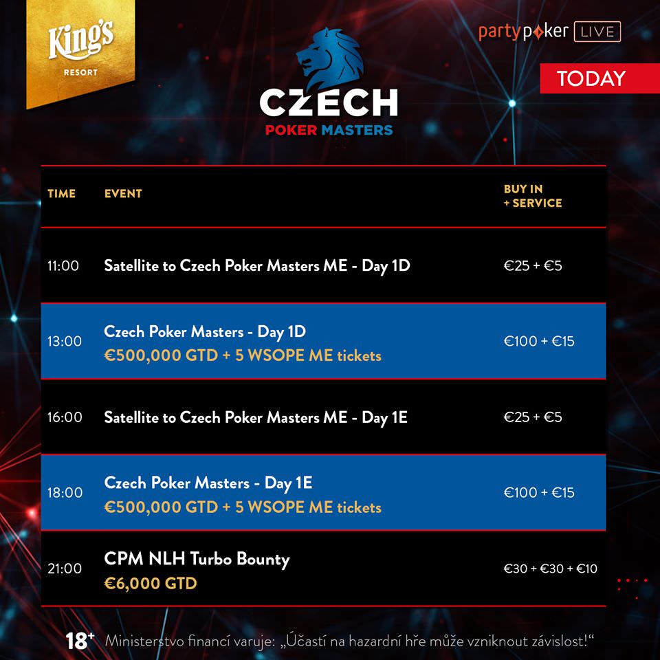 | Sat 14.12. 18:00 | Czech Poker Masters - Day 1K | 551.750 EUR | 100 EUR | 15 EUR |