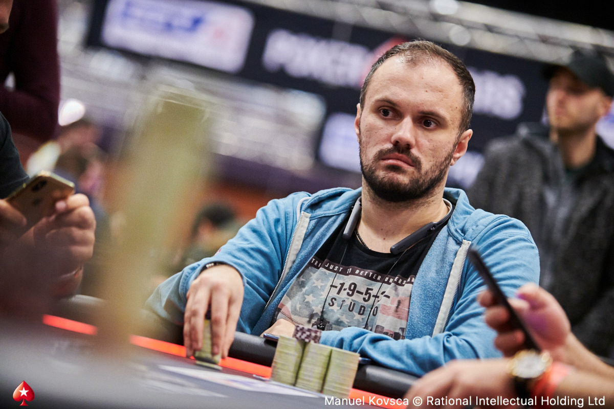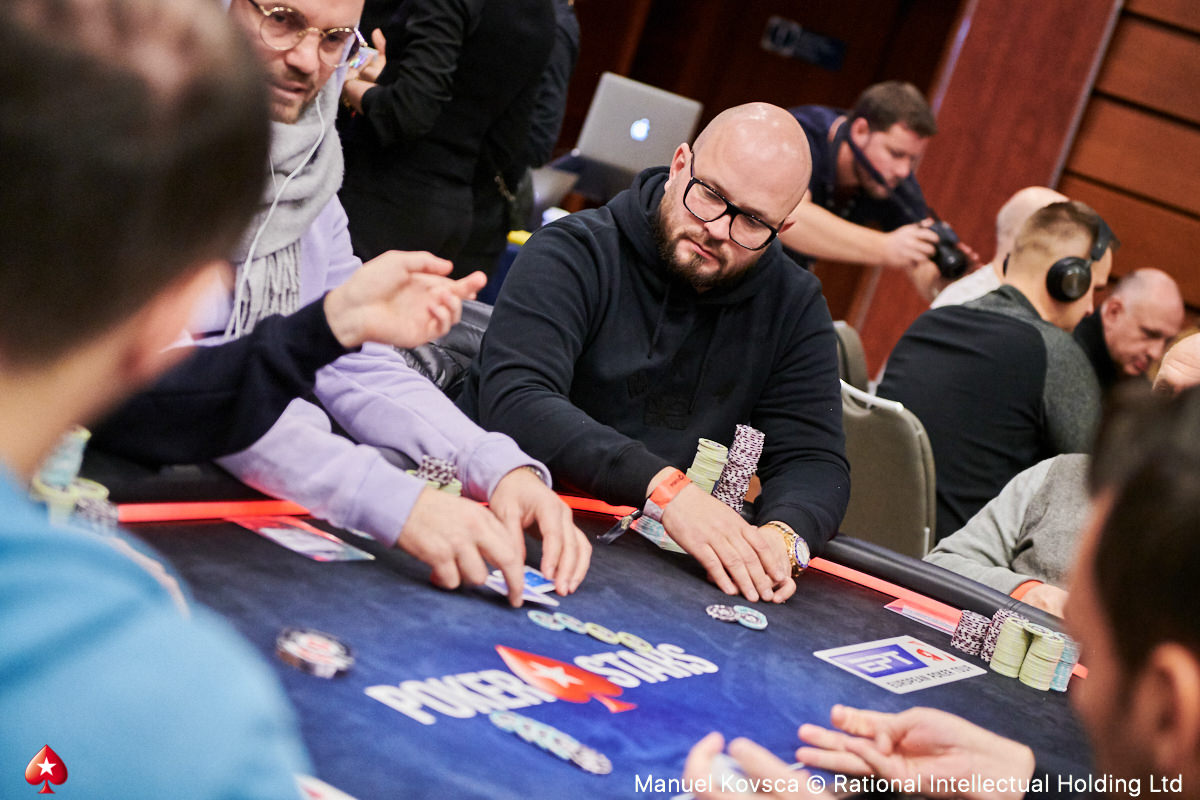Was Jasper Meijer van Putten an Tag 3 im EPT National veranstaltete, hat man selten gesehen. Der Niederländer, der quasi jedes Jahr nach Prag kommt, um hier eines der großen Events abzuräumen (2016: EPT Main Event Sieger, 2017: EPT €10.300 NLH Sieger, 2018: 4 EPT Cashes, 2 Final Tables) legte los wie die Feuerwehr. Als zweiter in Chips in Tag 3 gestartet, hatte er schon in den ersten Leveln seinen Stack verdreifacht. Jeder Hand, die er spielte brachte ihm mehr Chips, jedes All-In egal ob als Favorit oder Underdog ging zugunsten des EPT-Champions aus. Am vollbesetzten Finaltisch hatte er zeitweise nahezu die Hälfte aller Chips in seinem Stack vereint. Erst nach 6 Stunden Spielzeit verlor van Putten seinen ersten Showdown, als er einen Coinflip gegen Nedelcu verlor. Auch den anderen Big Stack machte der Niederländer stark, als er gegen Semen Kravets einen großen Pot im Showdown verlor. Das ganze passierte während eines Levels, in dem van Putten jede Hand verlor und von seinem überragenden Chiplead unter Chip-Average abstürzte. Die letzte Hand des Tages sollte ihn jedoch, trotz nahezu aussichtsloser Position, auf seiner Achterbahnfahrt wieder nach oben bringen: Nach dem UTG-Raise des Niederländers ging Rafael Alkhouri vom Big Blind aus mit dem 6,5-fachen der Initial Bet all-in, was van Putten nach einiger Bedenkzeit für mehr als die Hälfte seines Stacks bezahlt wurde. Während der Schwede