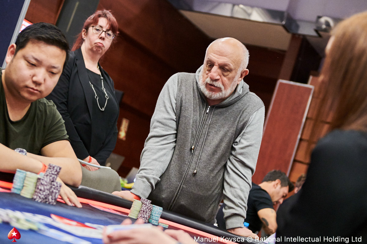 Die restlichen Finalisten an Tag 4 sind Yin Liu aus China mit 11.300.000 Chips, respektive 38 Big Blinds, sowie der Shortstack Gregory Teman aus Israel mit 5.675.000 Chips, was aber immer noch 19 Big Blinds entspricht. Nicht der prominenteste Spieler, aber das prominenteste Rail bringt der Finne Jussi Mattila mit. Auf seiner zuletzt 11.125.000 großen Chipstack, 37 Big Blinds, warfen immer wieder seine Landsleute Patrik Antonius und Ilari „Ziigmund“ Sahmies einen Blick.