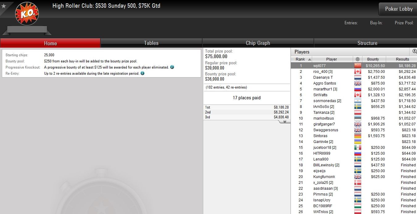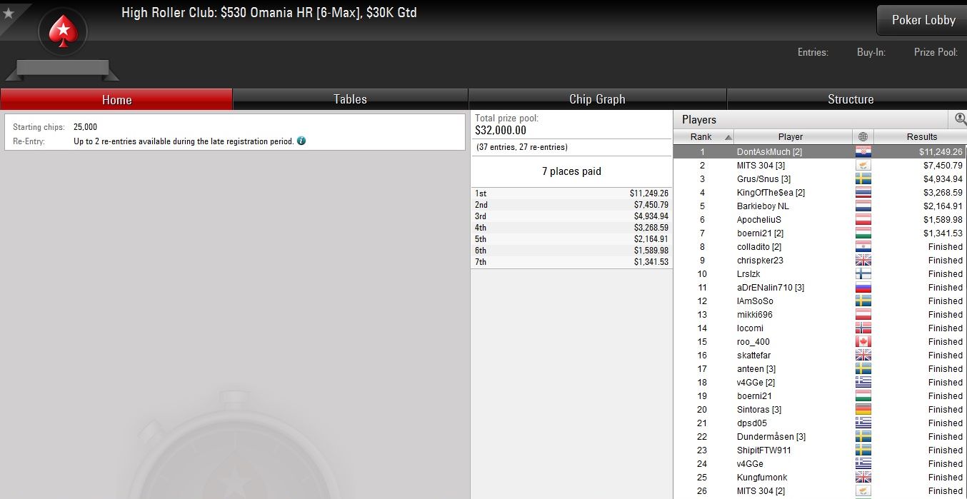 Gerade ins Geld kam bei diesem Turnier Igor „lechuckpoker“ Kurganov, der als Siebter knapp $6.000 gewann.