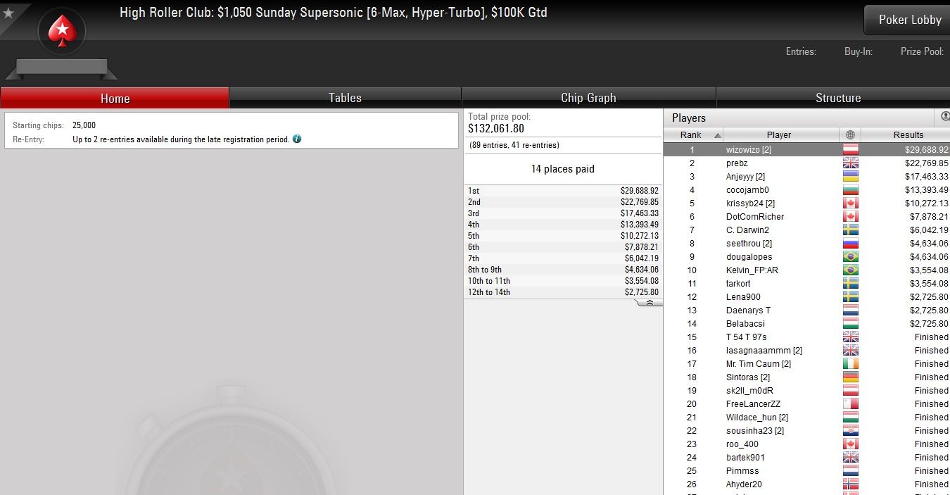 Das herausragende Ergebnis aus deutschsprachiger Sicht holte dabei Ole „wizowizo“ Schemion, der beim $1.050 Sunday Supersonic die Weltelite besiegte und bei 130 Entries gut $29.000 kassierte.