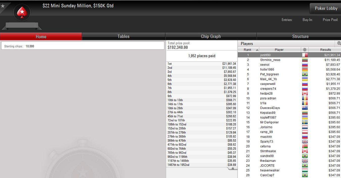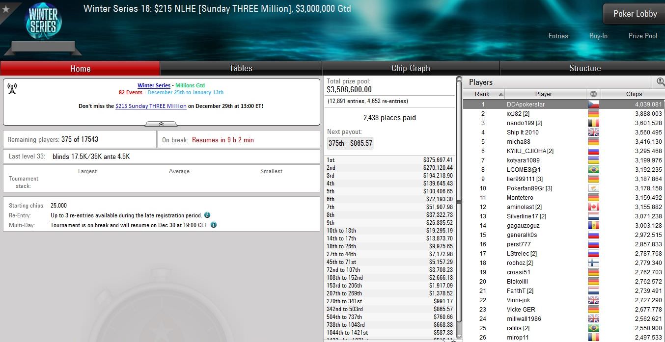 Bei Online-Riese PokerStars war am gestrigen Sonntag Großkampftag angesagt, denn neben den Turnieren der Winter Series standen die Sunday THREE Million und weitere Highrollerturniere auf dem Programm.